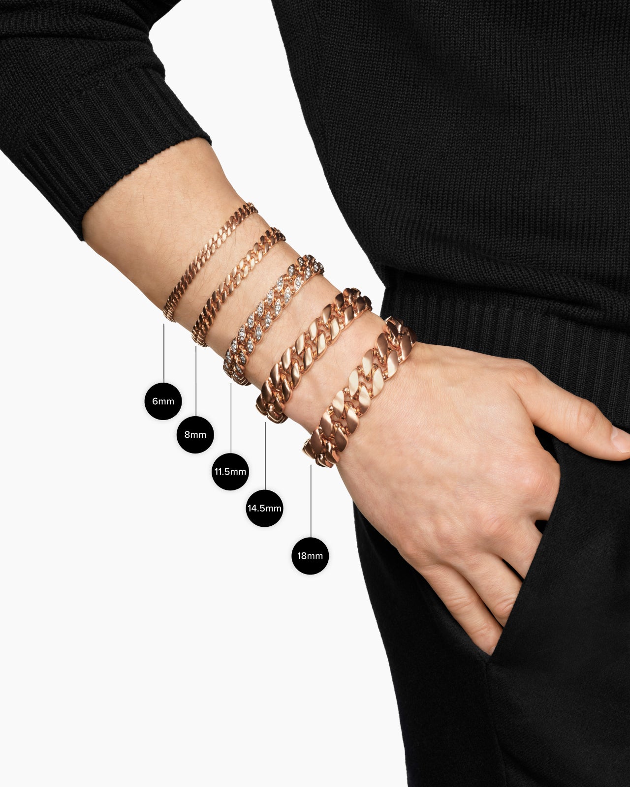 Curb Chain Bracelet 18K Rose Gold with Cognac Diamonds, 18mm