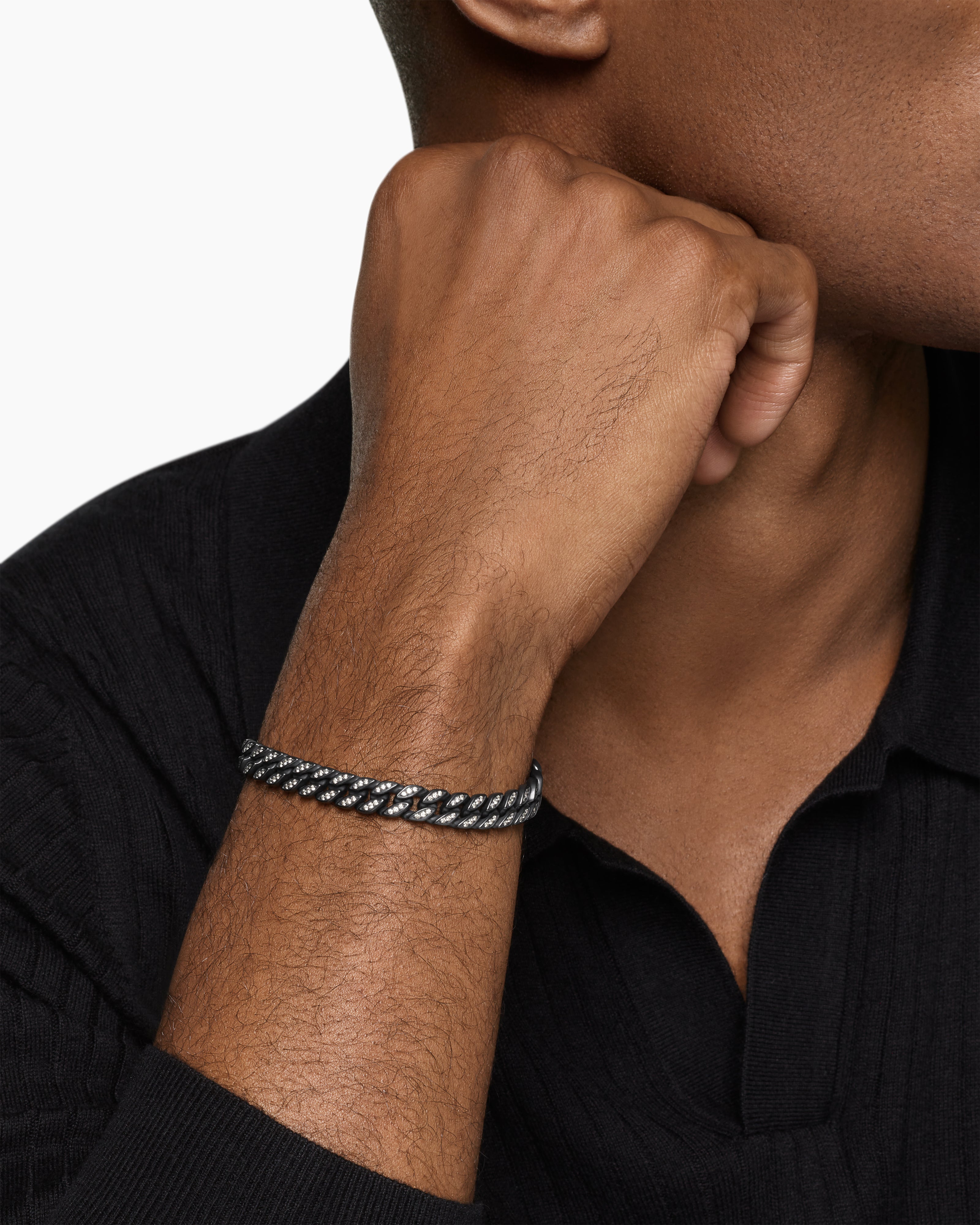 Inspired by the graceful curves of equestrian riding gear, we've elevated this traditional chain by treating each sculptural link like a work of art, casting and finishing each by hand. The design becomes uniquely David Yurman with the added reference to our signature motif: the flattened silhouette of interlocking links creates an abstracted view of Cable's twisted strands.