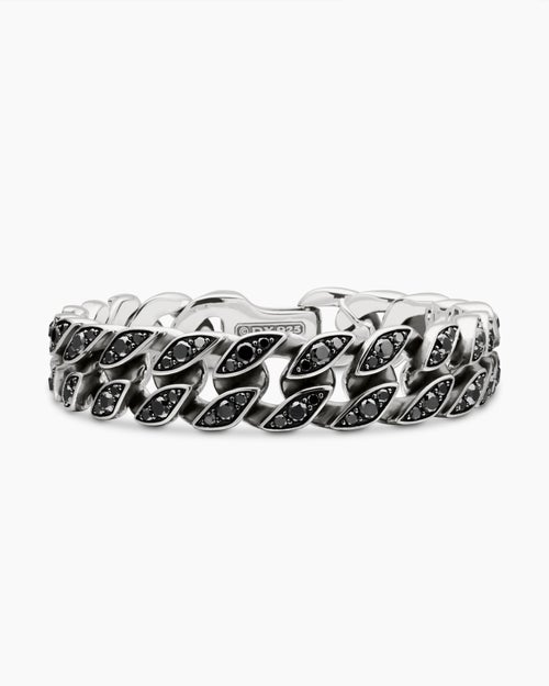 Curb Chain Bracelet Sterling Silver with Black Diamonds, 14.5mm