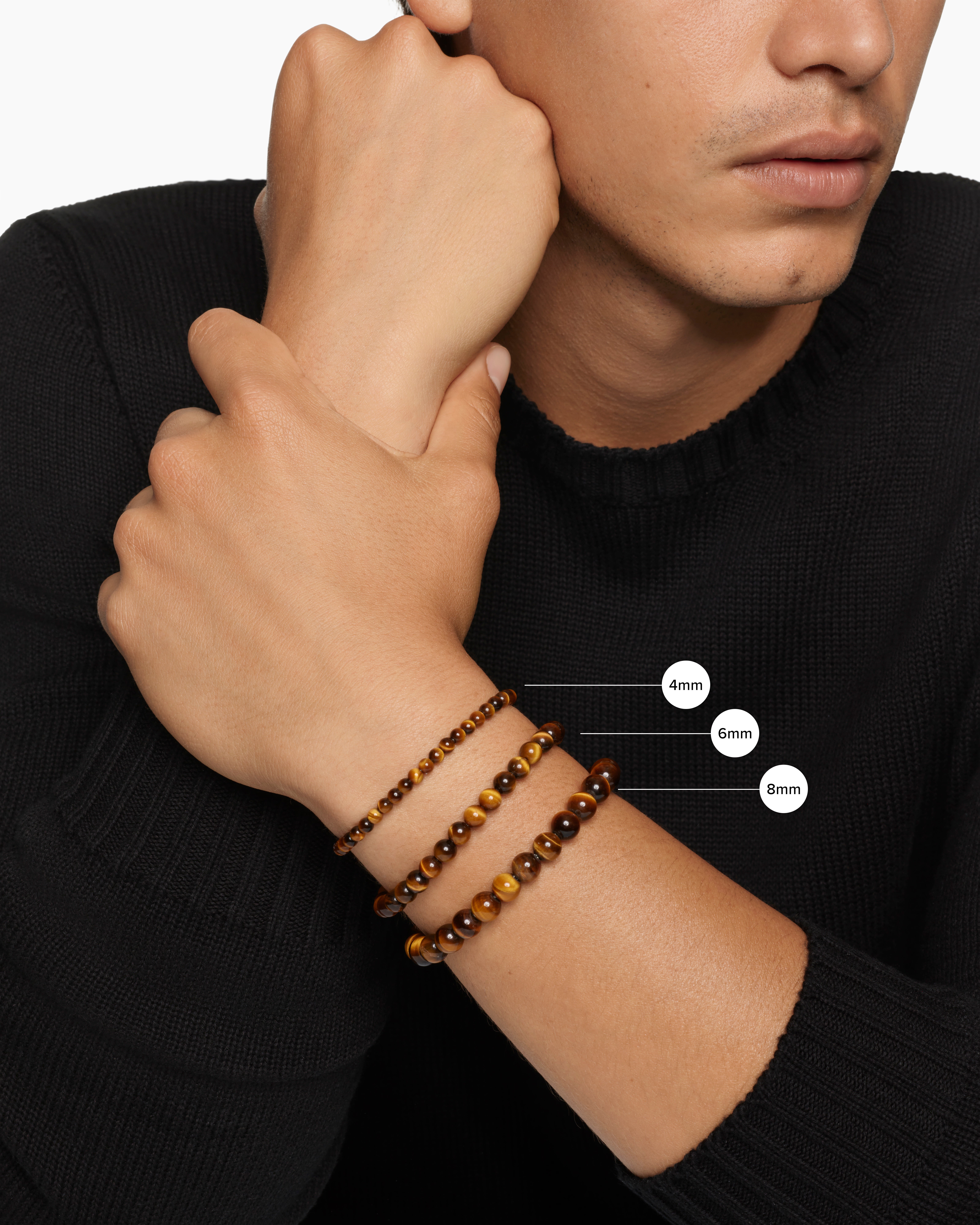 Spiritual Beads Bracelet Sterling Silver with Tiger’s Eye, 8mm