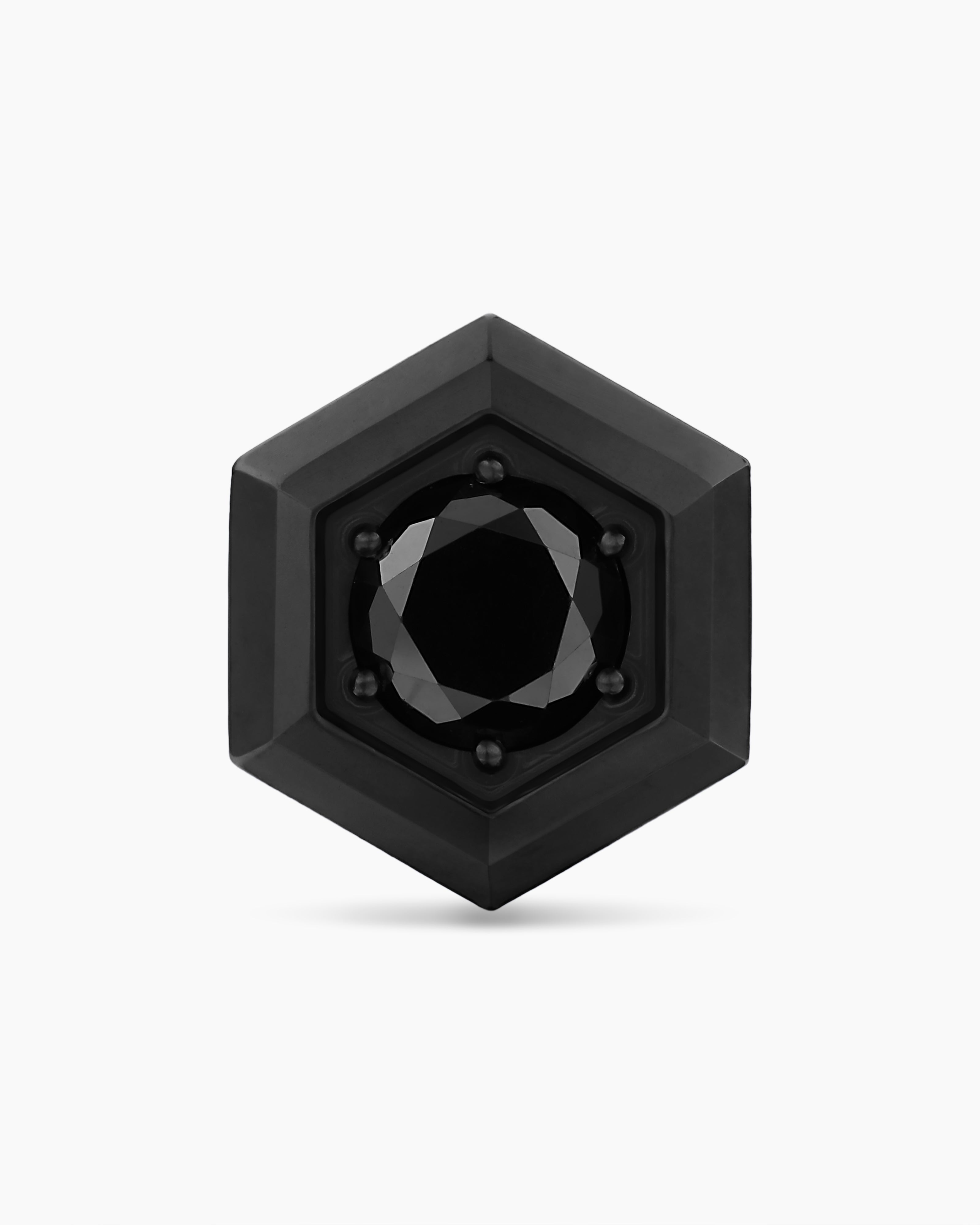 Faceted Hex Stud Earring Black Titanium with Black Diamond, 8mm