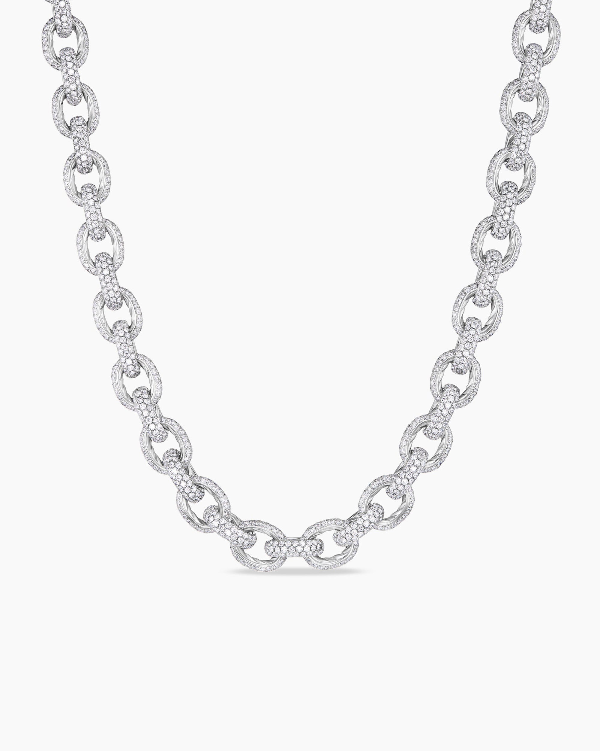 Men's Pavé Oval Link Necklace White Gold with Diamonds
