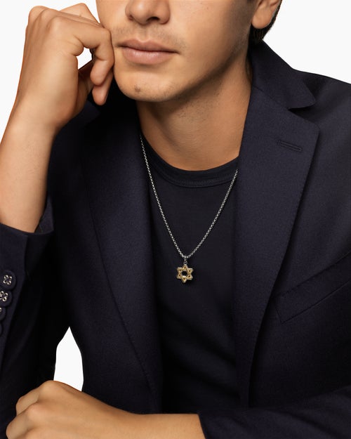 Cable Star of David Amulet Sterling Silver with 18K Yellow Gold, 19mm