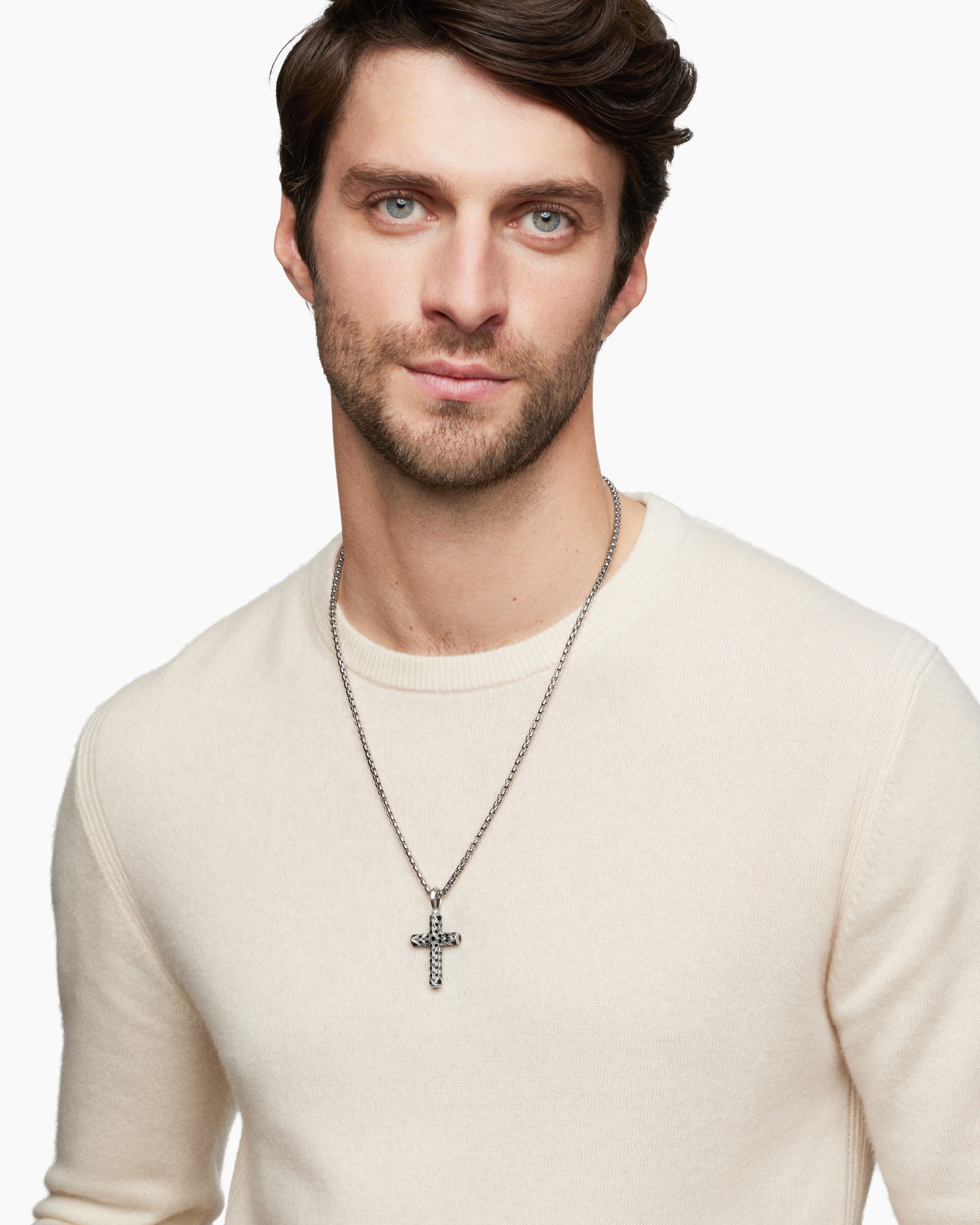 Chevron Cross Pendant Sterling Silver with Black Diamonds, 36mm