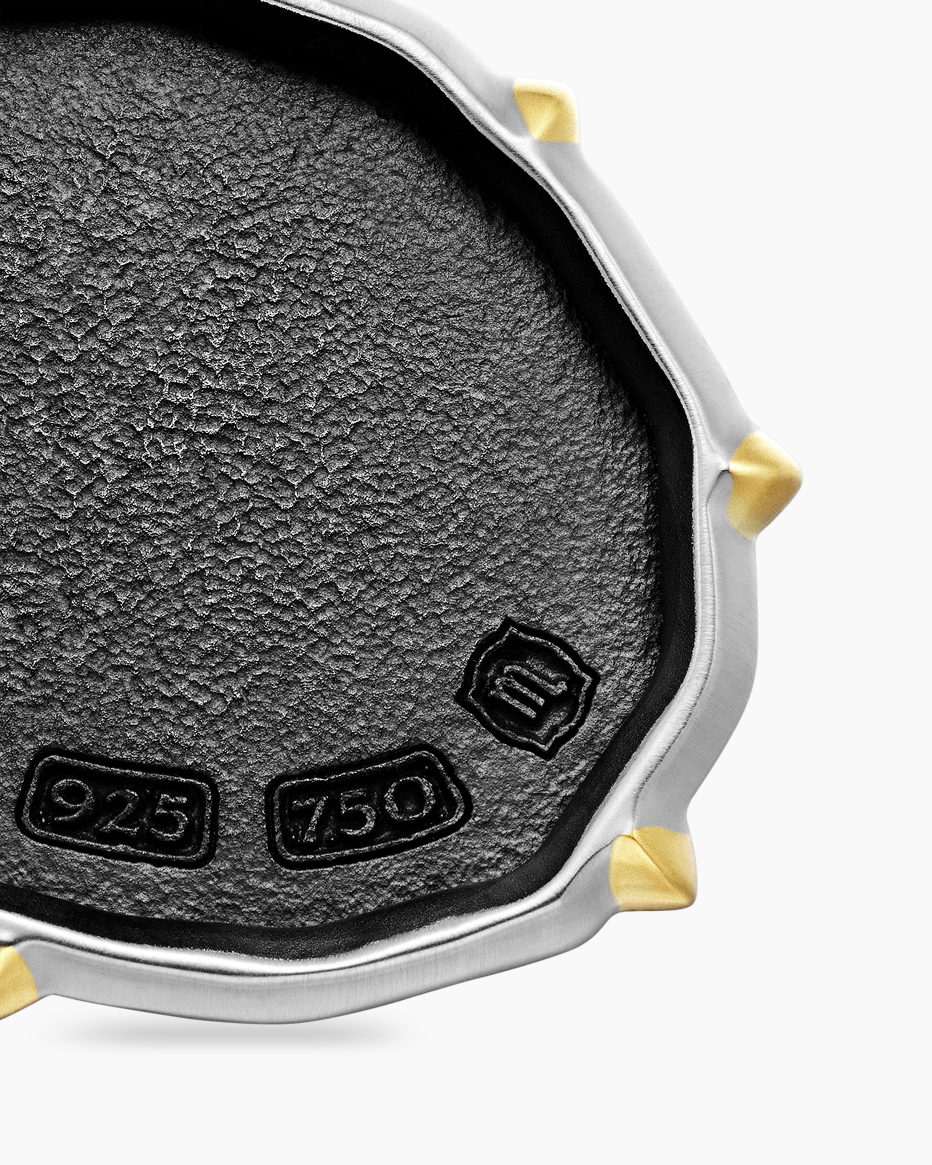 Use the white side of the provided David Yurman polishing cloth to gently wipe silver portions clean. Remove any remaining tarnish or impurities with mild diluted soap and warm water. Dry thoroughly before storing the design in its jewelry pouch.
