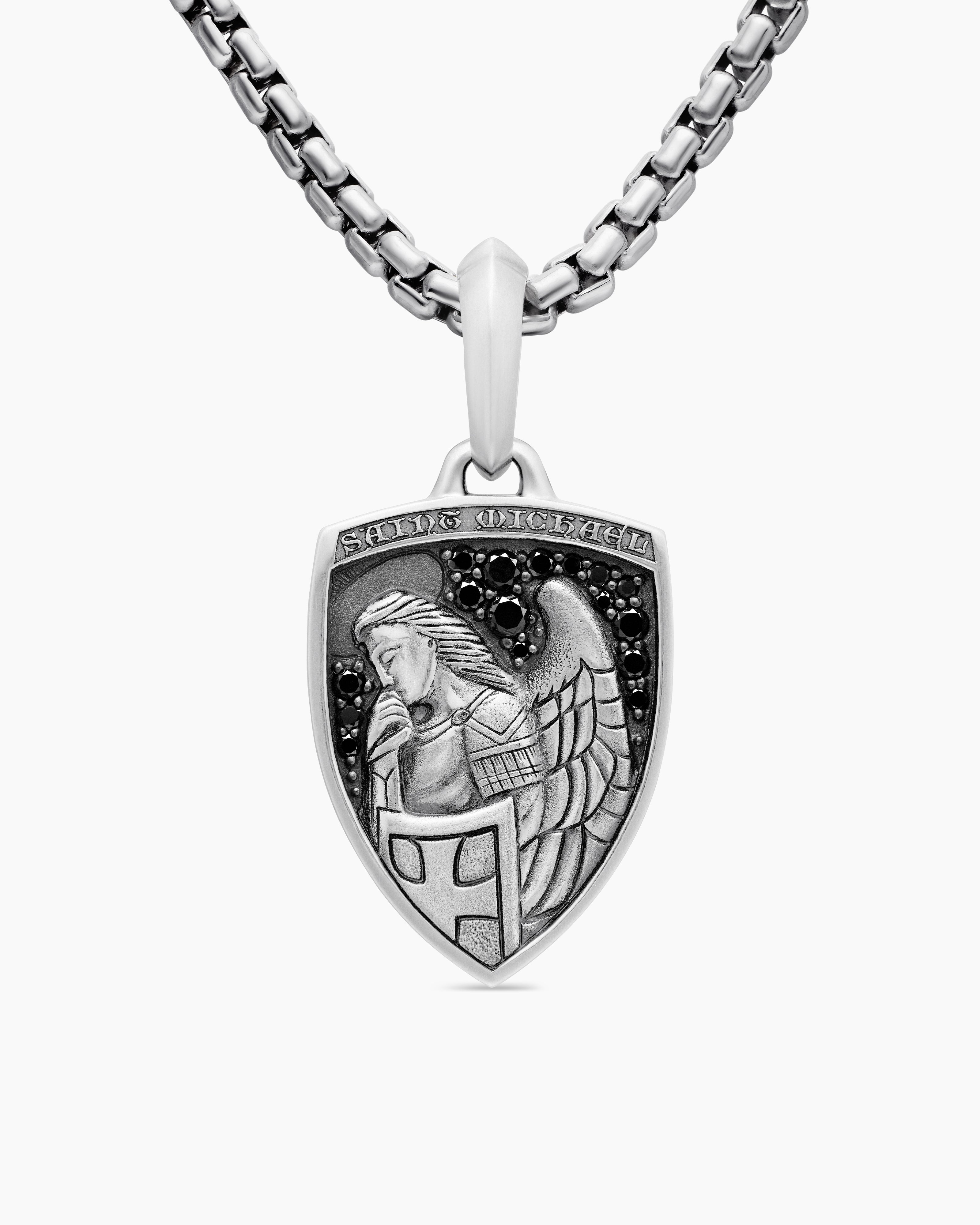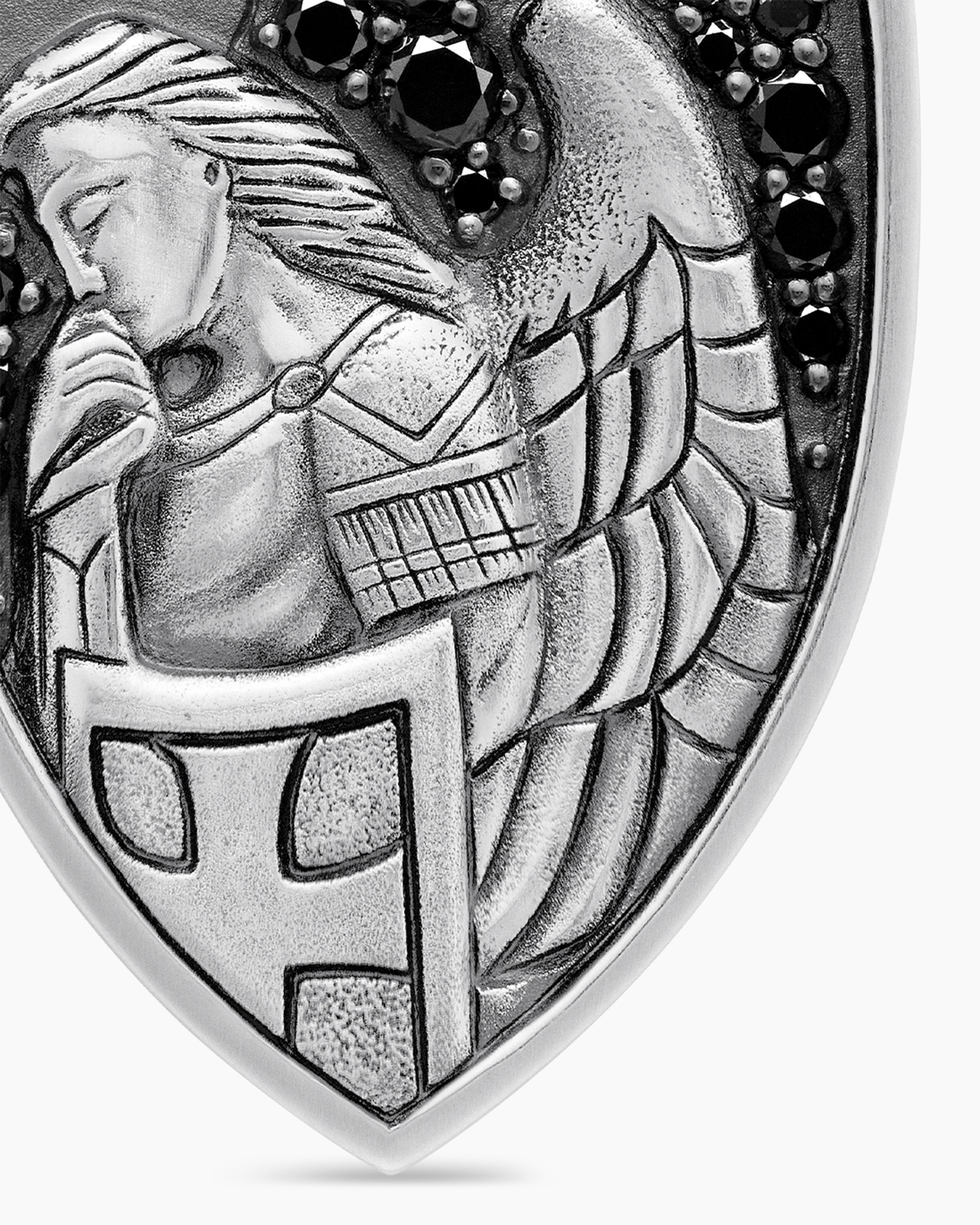 St. Michael Amulet Sterling Silver with Black Diamonds, 26mm