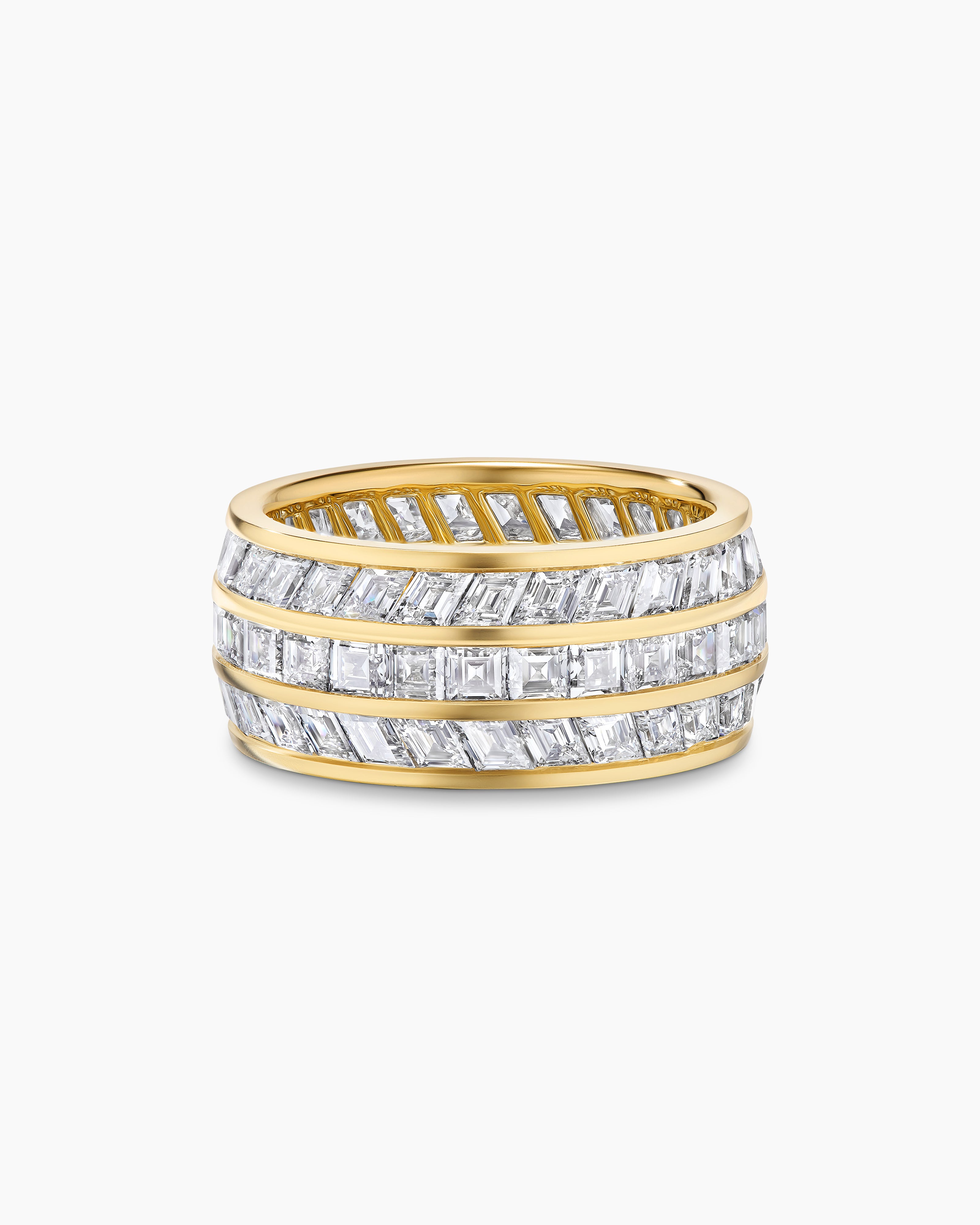 Men's Deco Stone Band Ring Yellow Gold with Diamonds