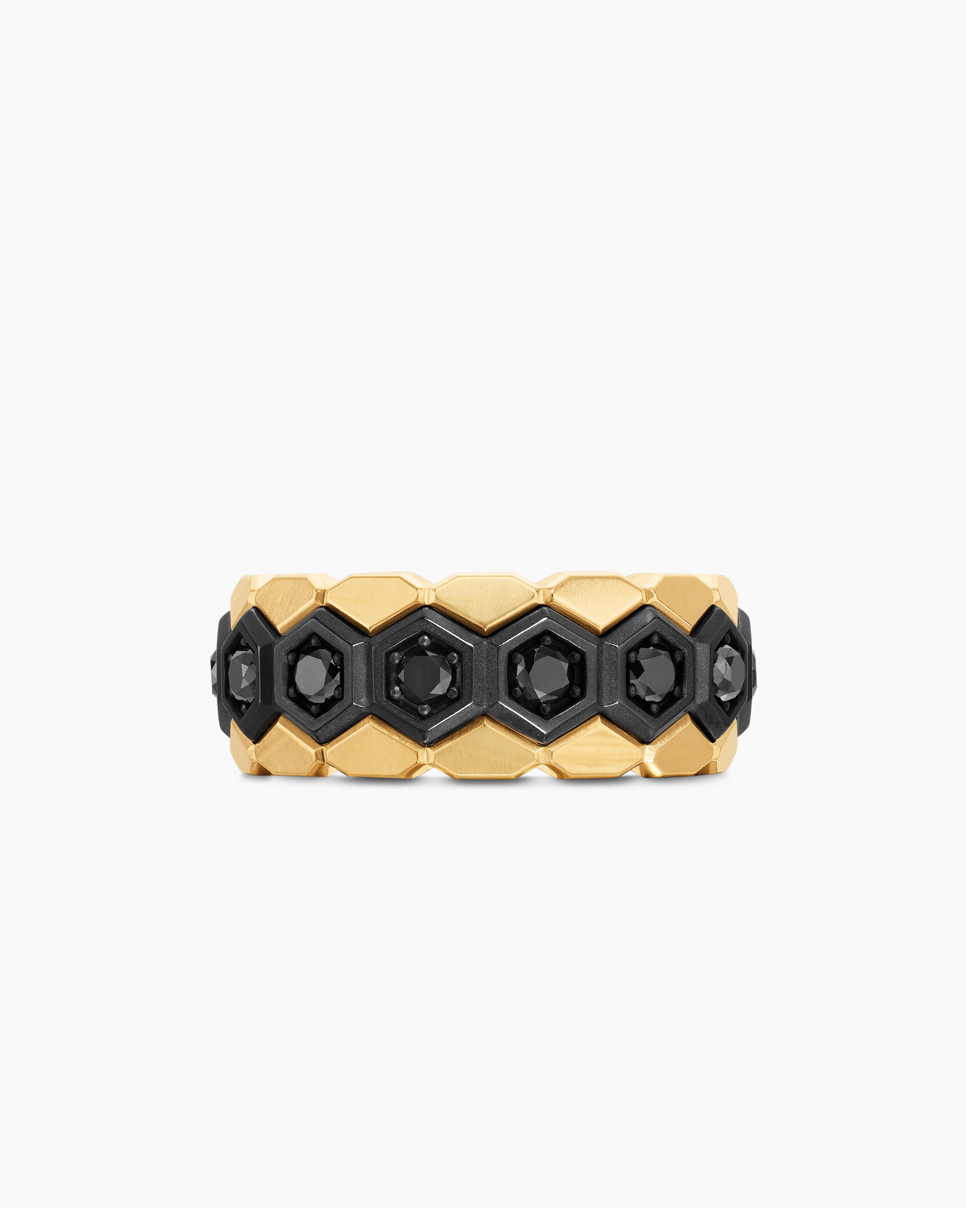 Hex Stack Ring Black Titanium with 18K Yellow Gold and Black Diamonds, 9.3mm