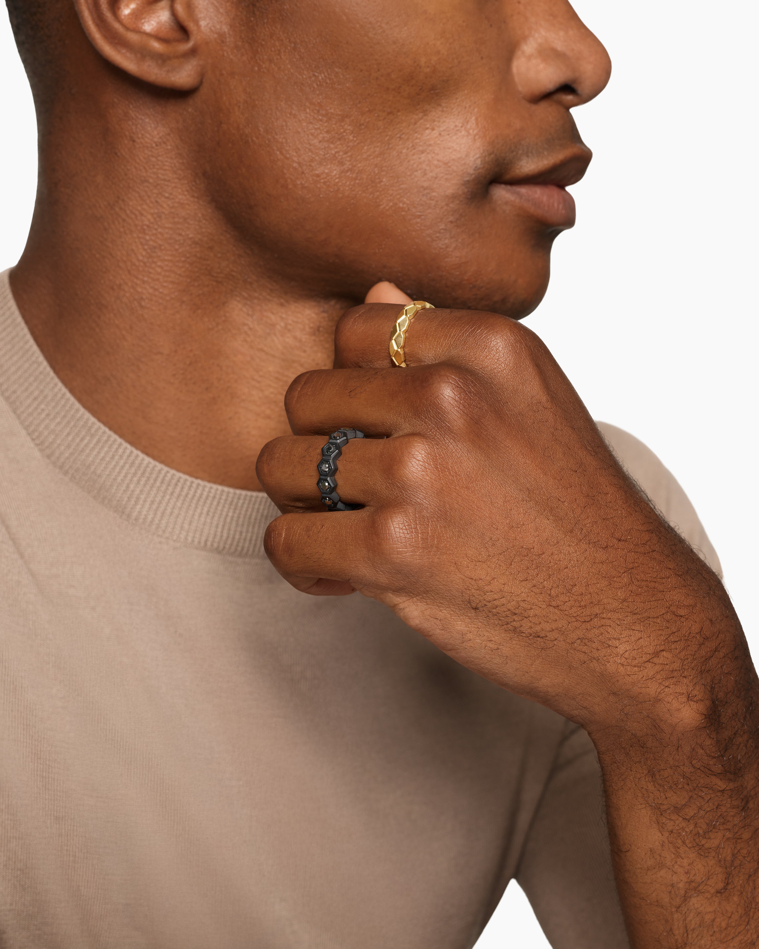 Hex Stack Ring Black Titanium with 18K Yellow Gold and Black Diamonds, 9.3mm