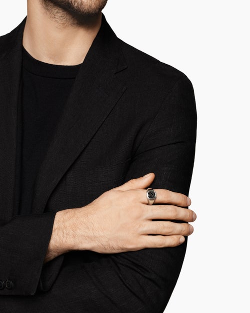 Streamline® Signet Ring Sterling Silver with Black Diamonds, 14mm