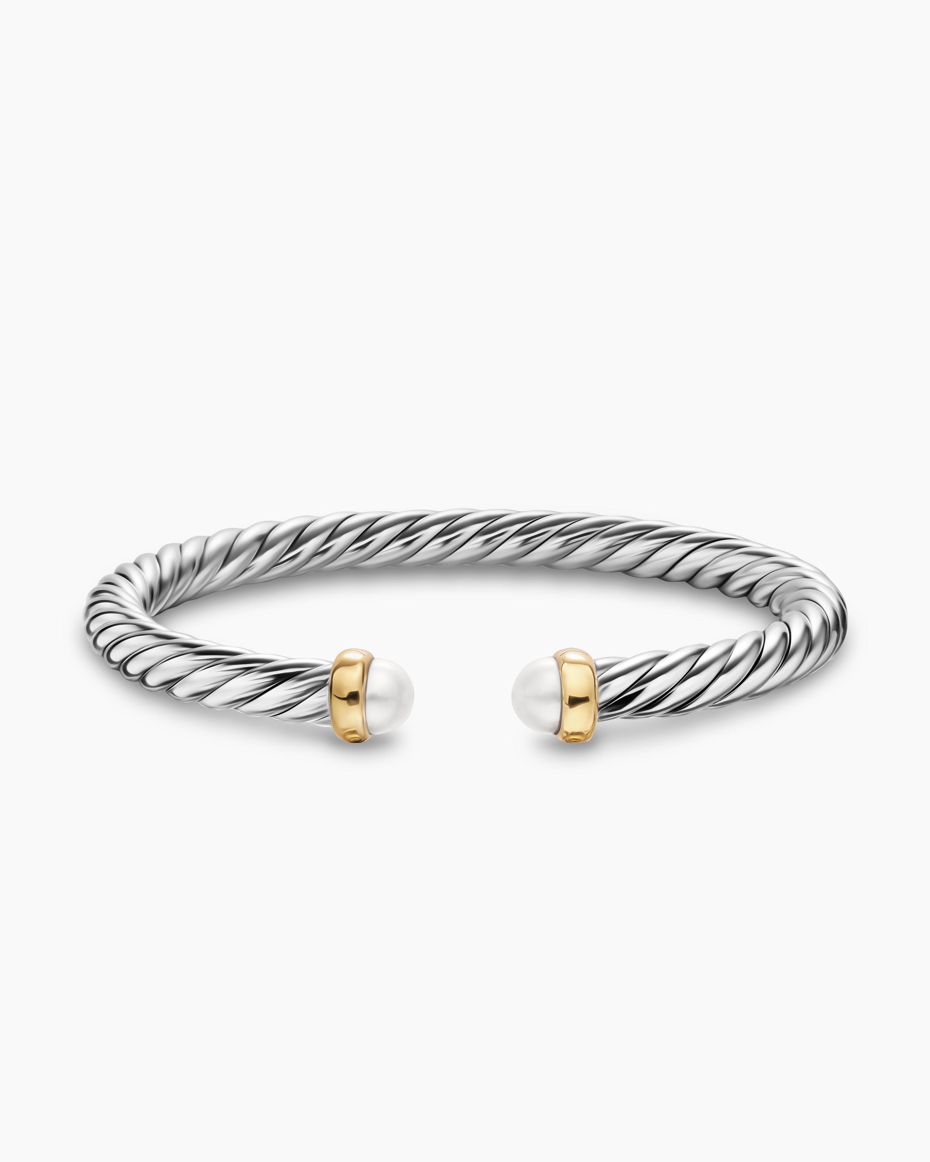 Cable Flex® Bracelet Sterling Silver with 14K Yellow Gold and Pearls, 6mm
