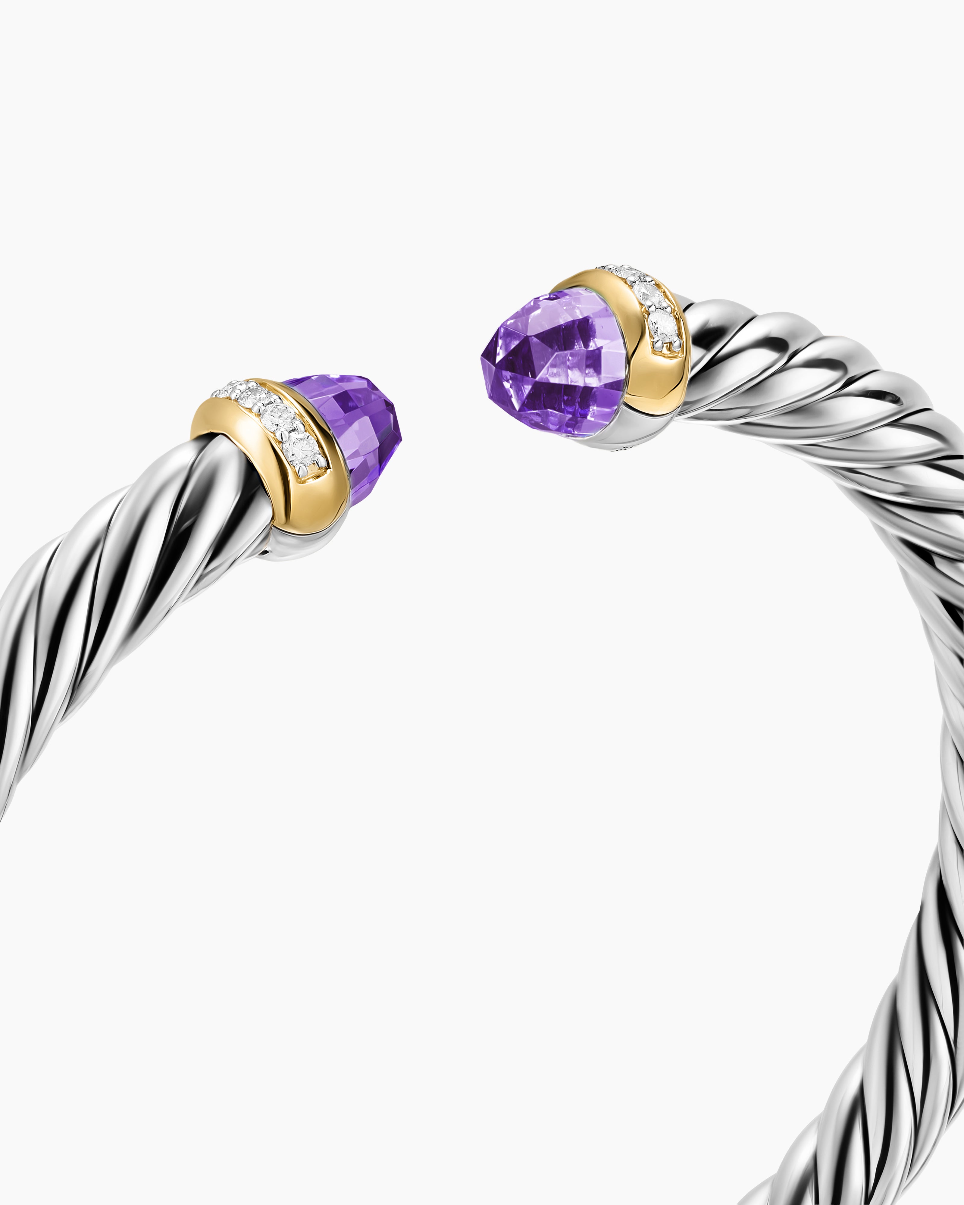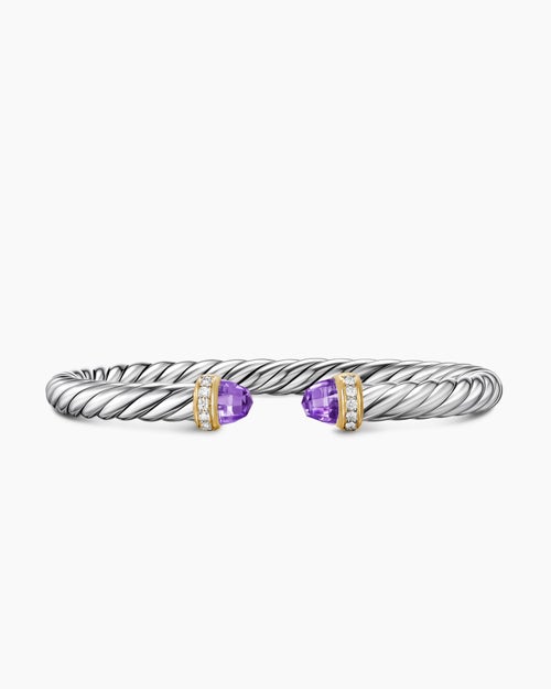Cable Flex® Bracelet Sterling Silver with 14K Yellow Gold, Amethyst and Diamonds, 6mm