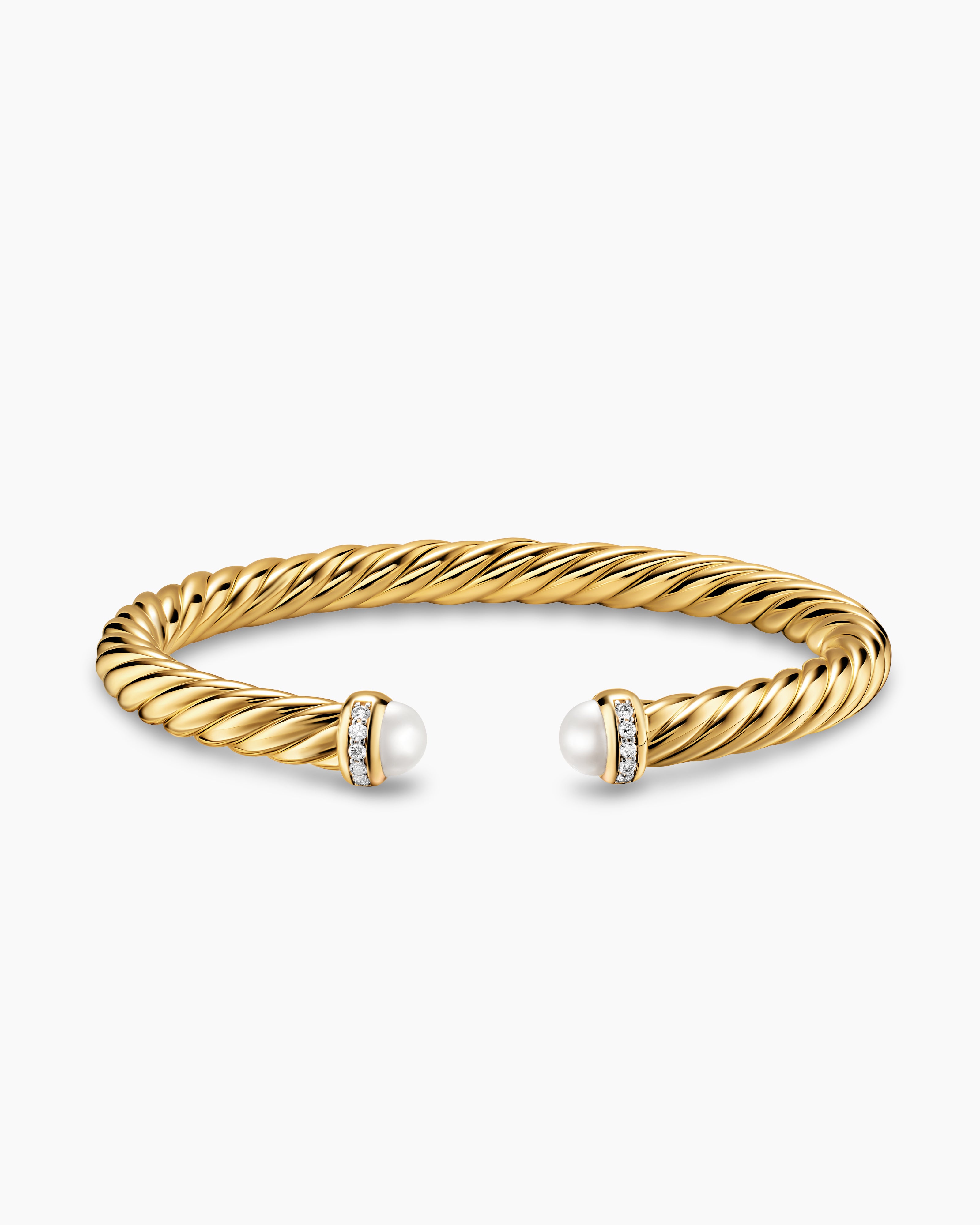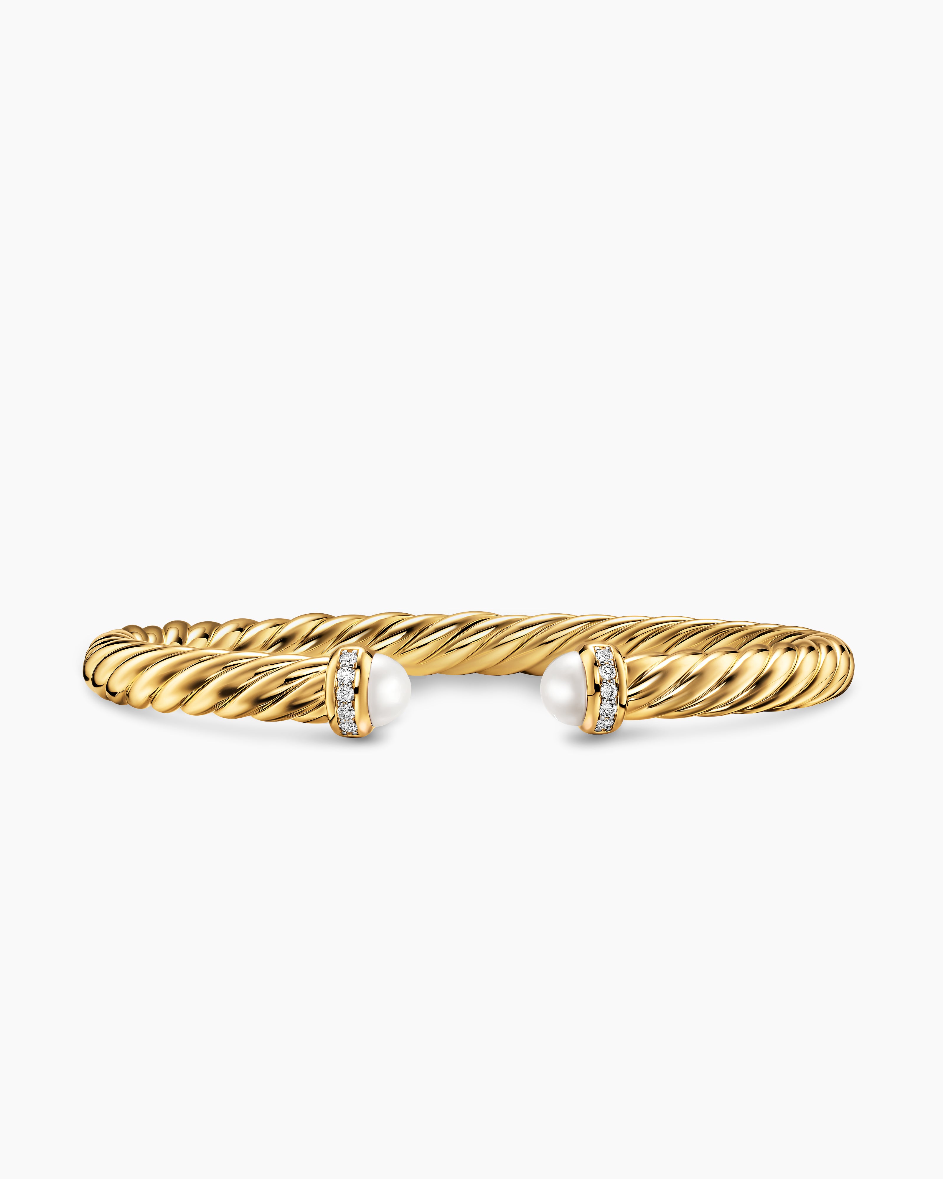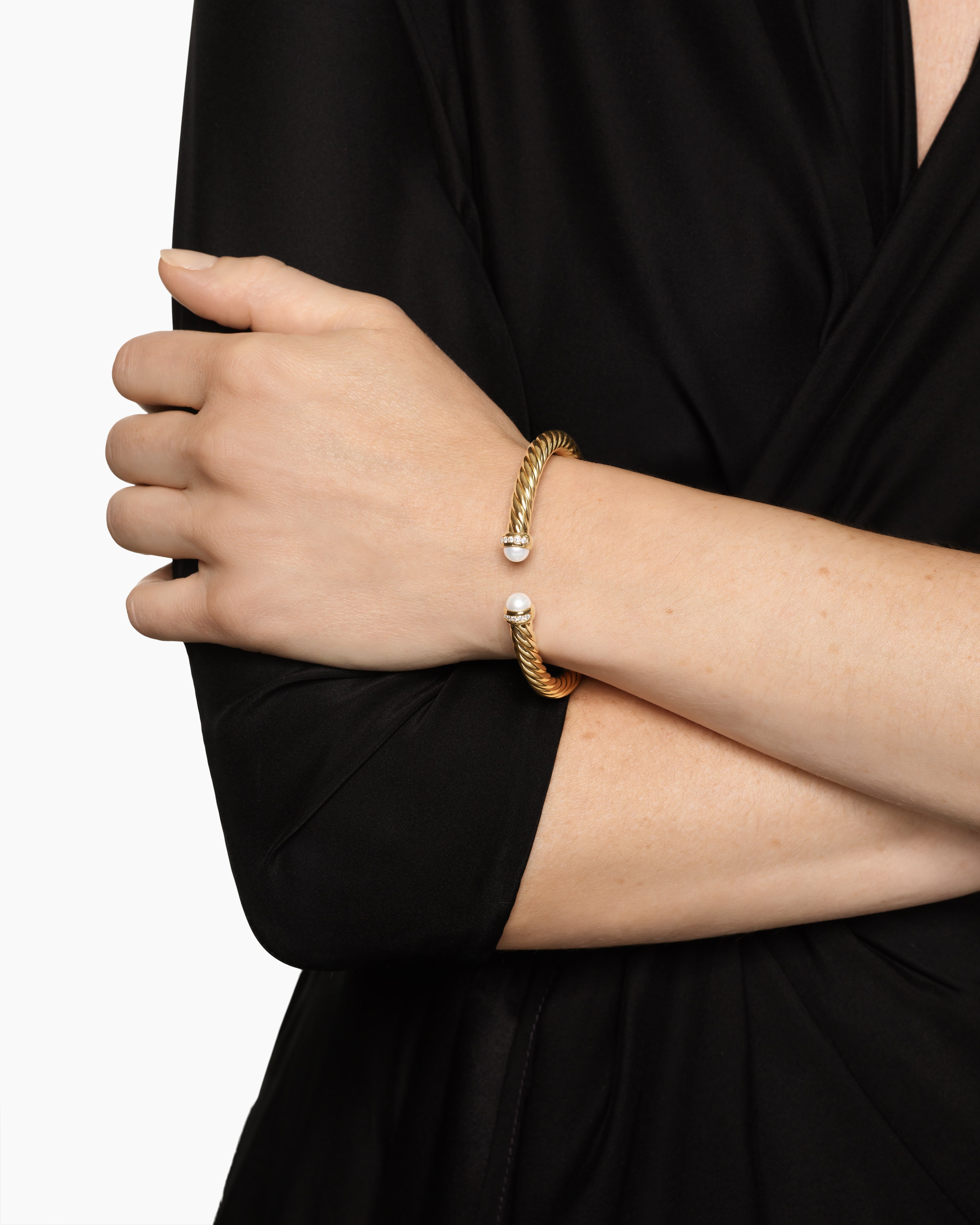 Cablespira® Flex Bracelet 18K Yellow Gold with Pearls and Diamonds, 6mm