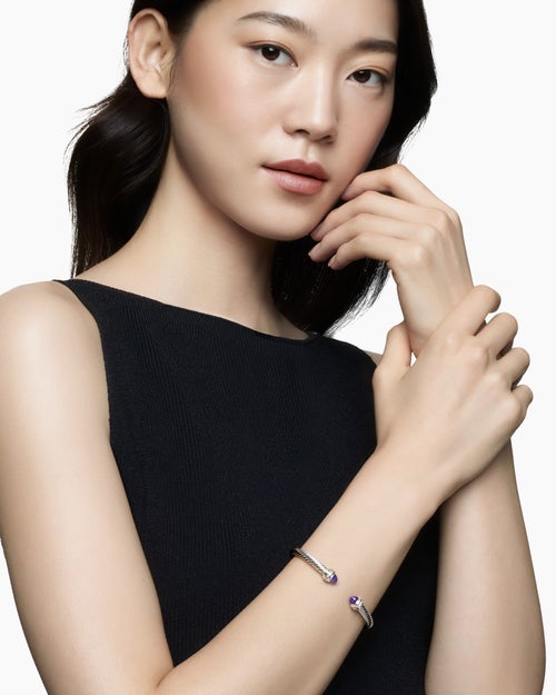 Classic Cable Bracelet Sterling Silver with Amethyst and Diamonds, 5mm