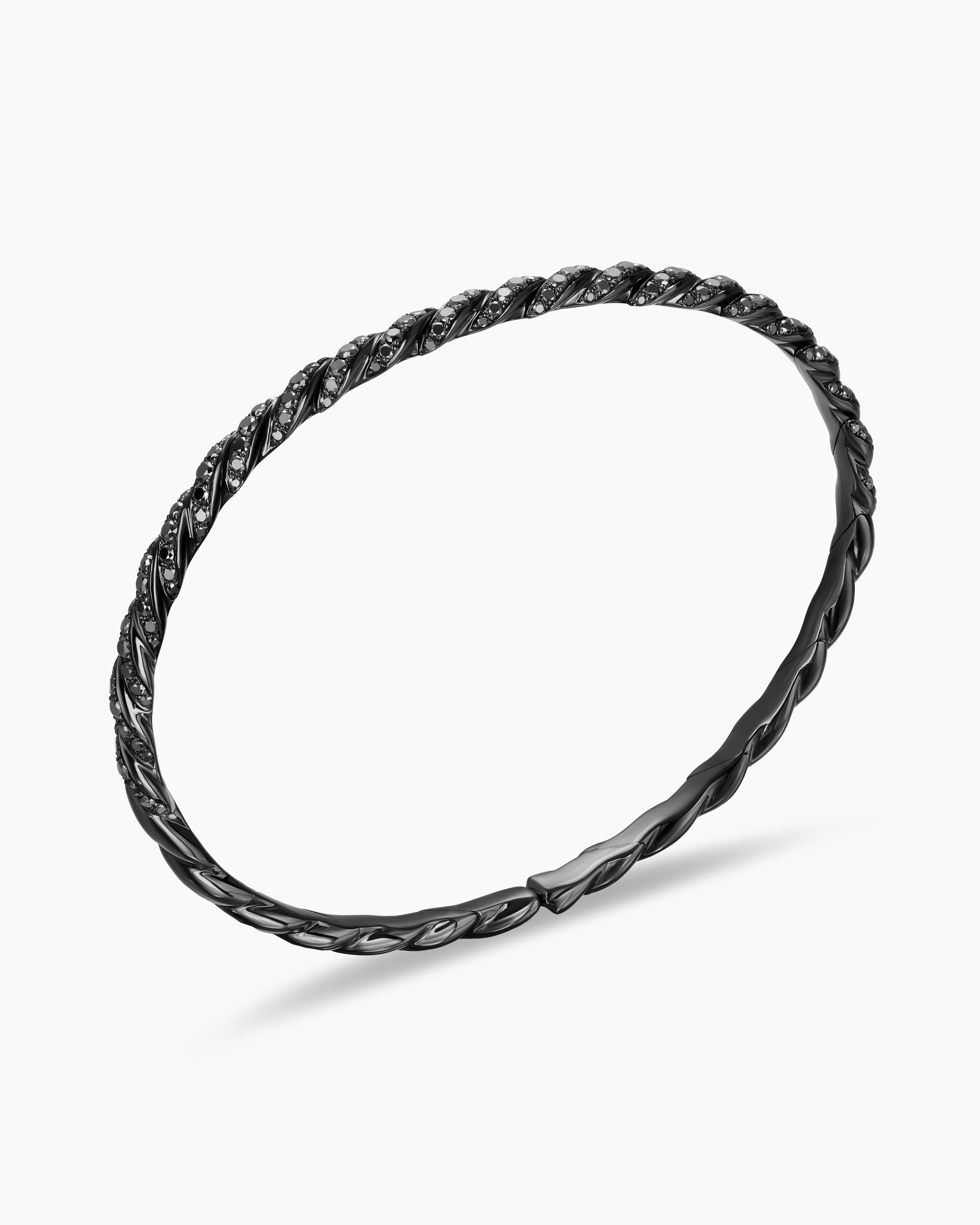 Sculpted Cable Flex Bracelet 18K White Gold with Black Rhodium and Black Diamonds, 3.5mm