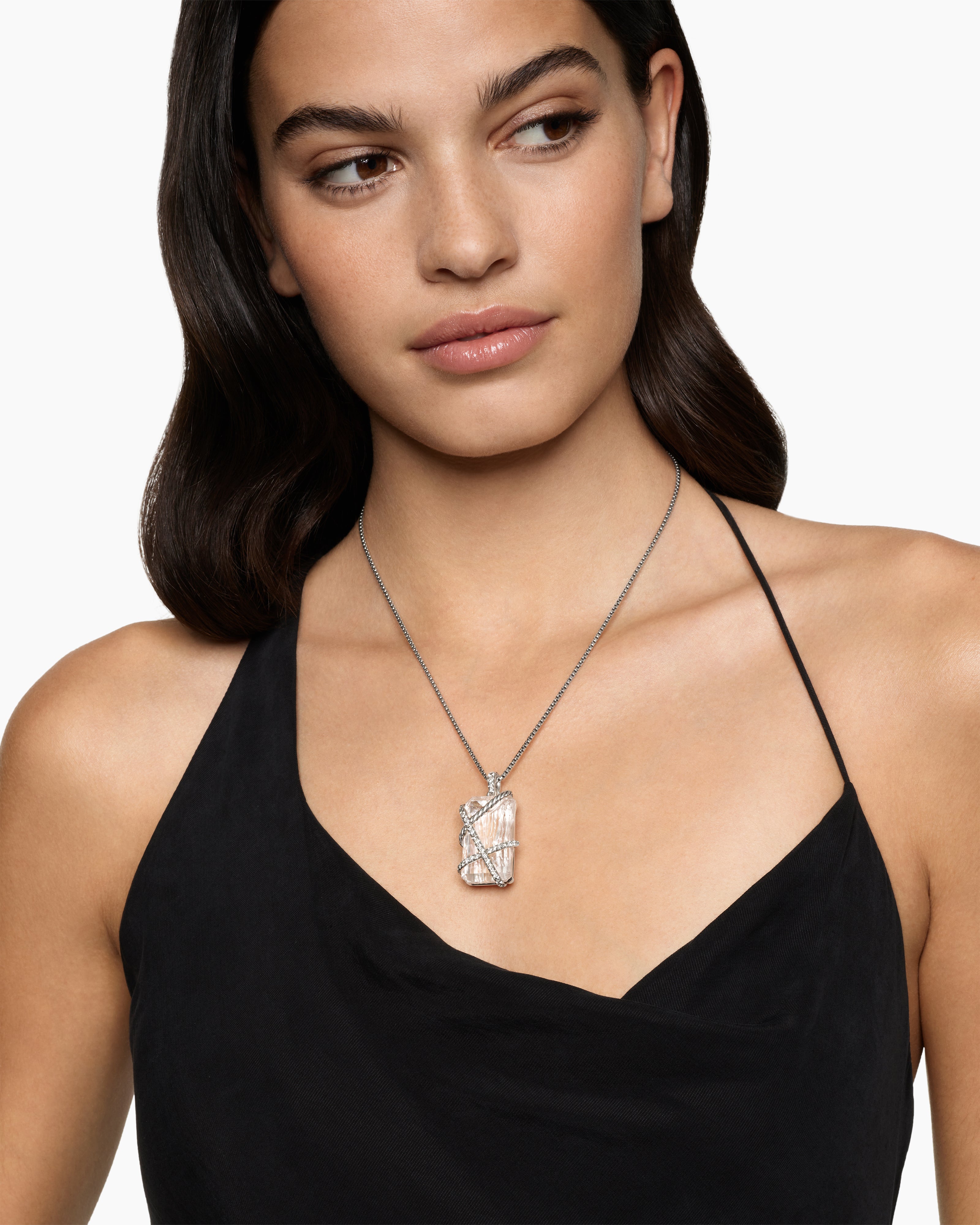 Cable Wrap Amulet Sterling Silver with Crystal and Diamonds, 32mm