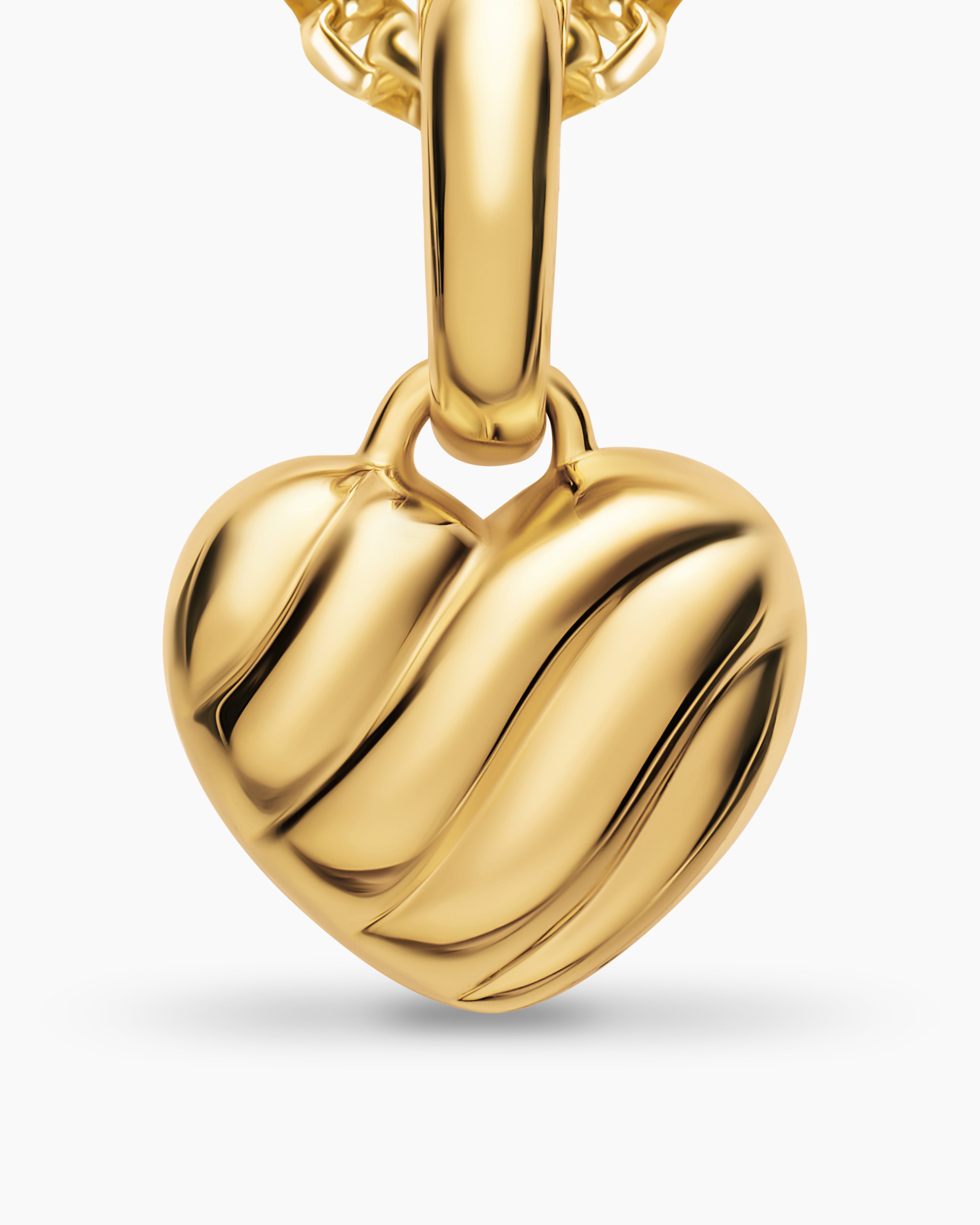 Petite Puffy Cable Heart Amulet 18K Yellow Gold, 7.4mm