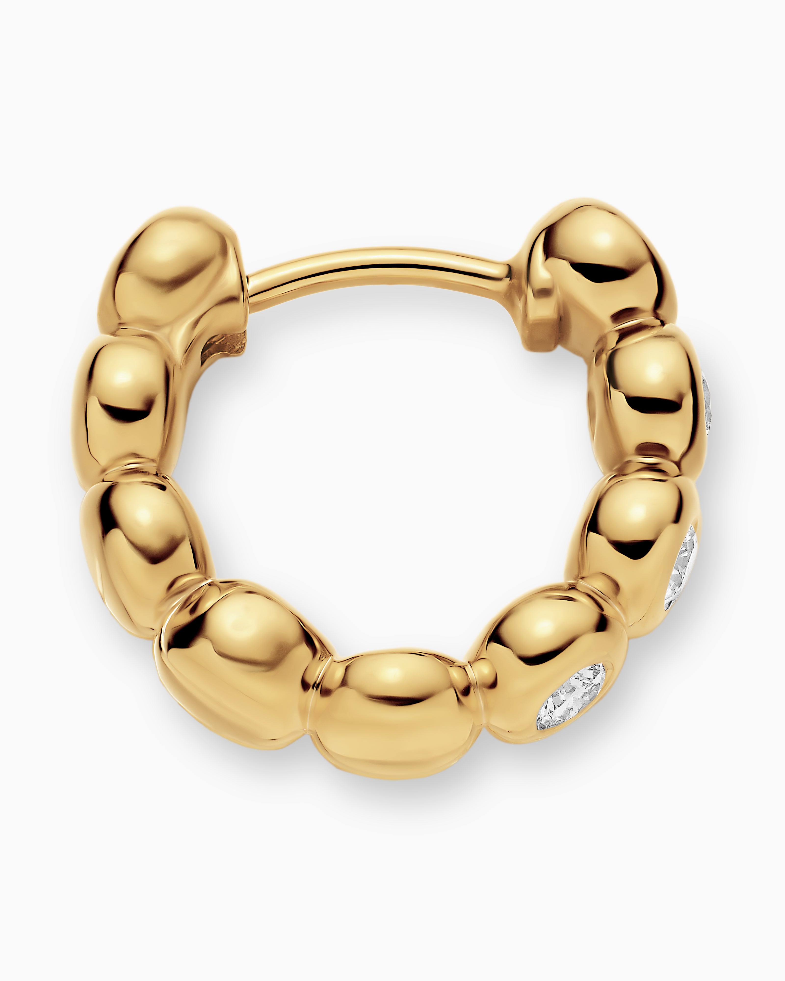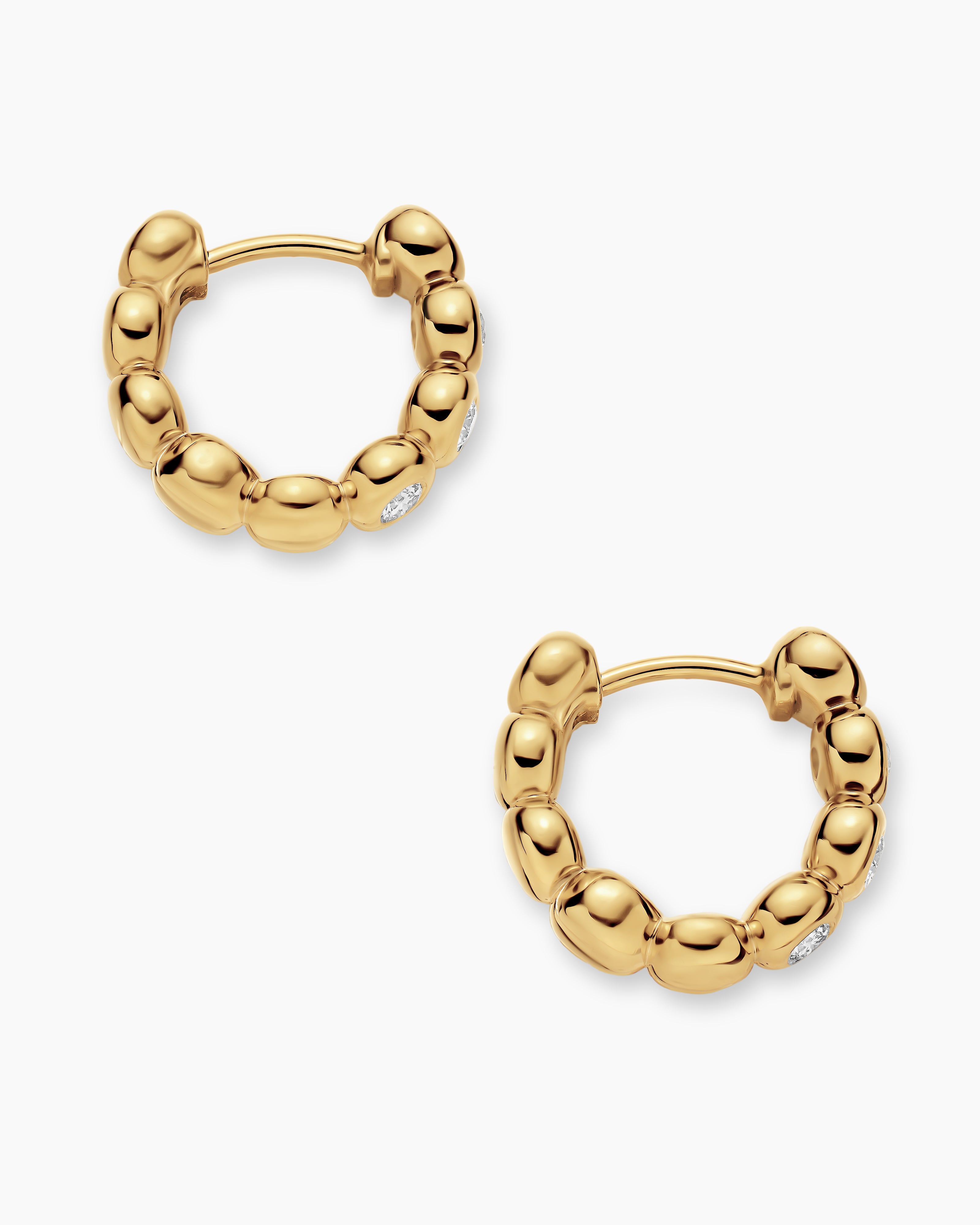 Bezel Set Hoop Earrings 18K Yellow Gold with Diamonds, 13.4mm