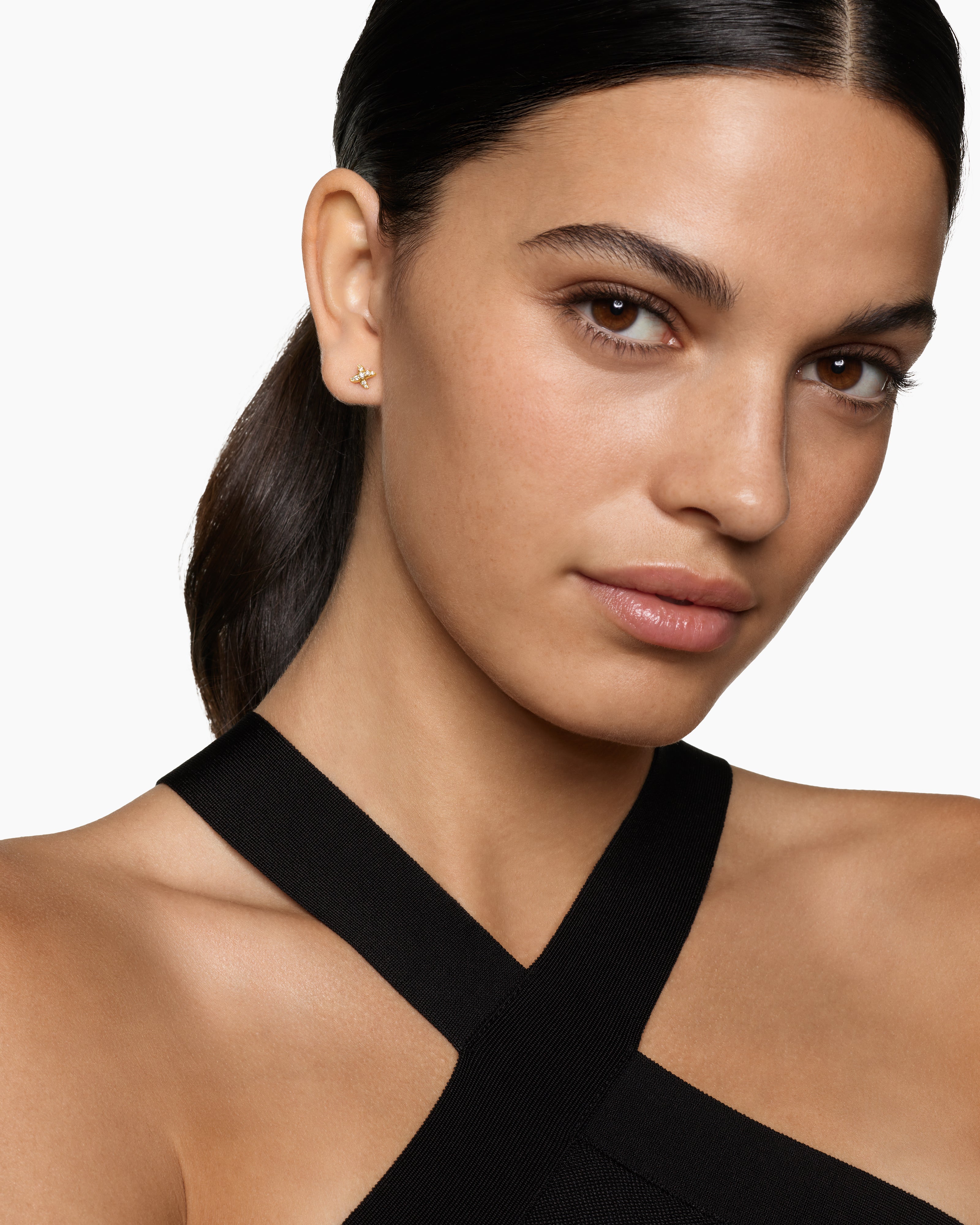 Crossover X Stud Earrings 18K Yellow Gold with Diamonds, 6mm