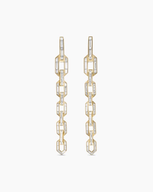 Deco Chain Link Drop Earrings Yellow Gold with Diamonds