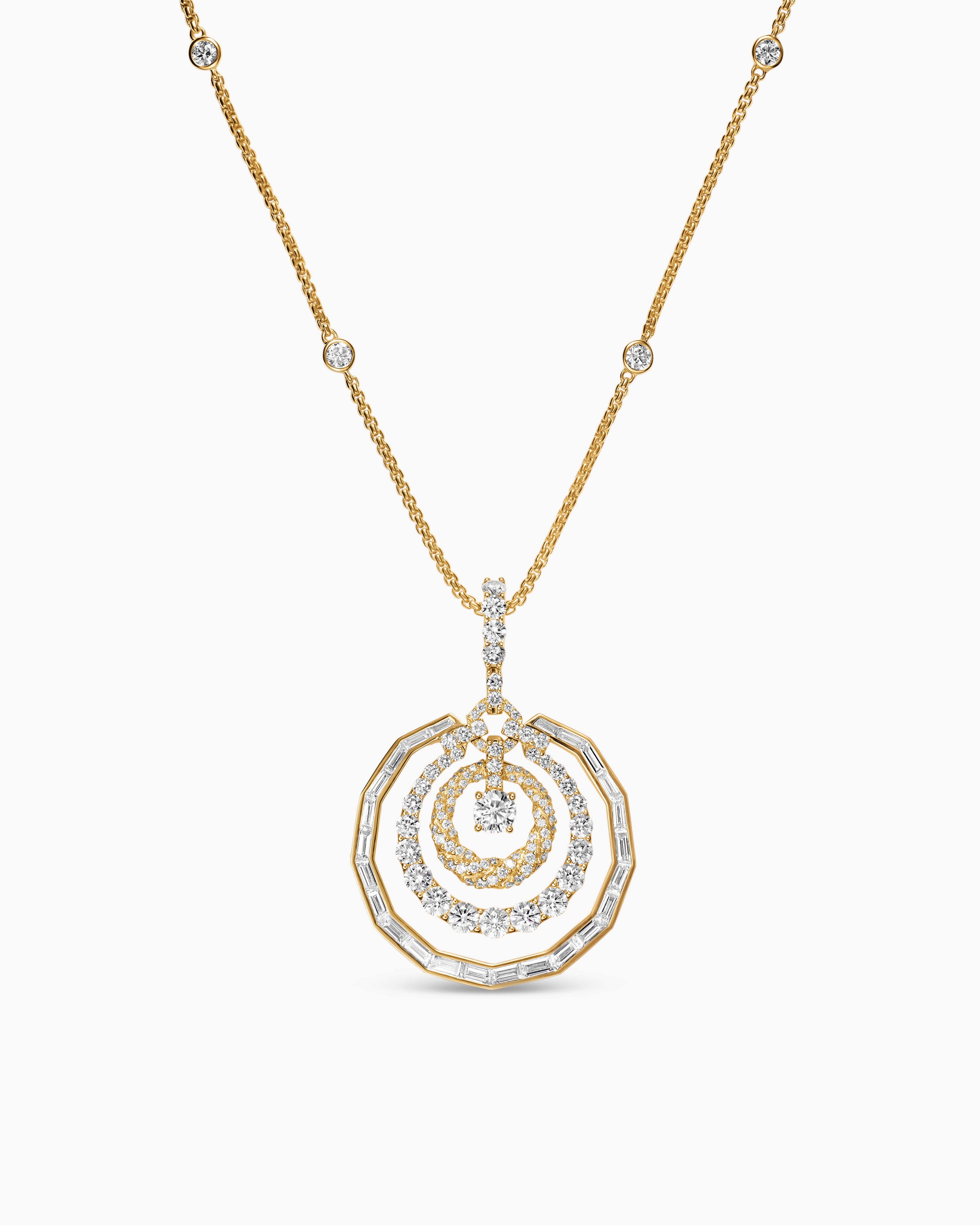 Stax Round Pendant Necklace Yellow Gold with Diamonds