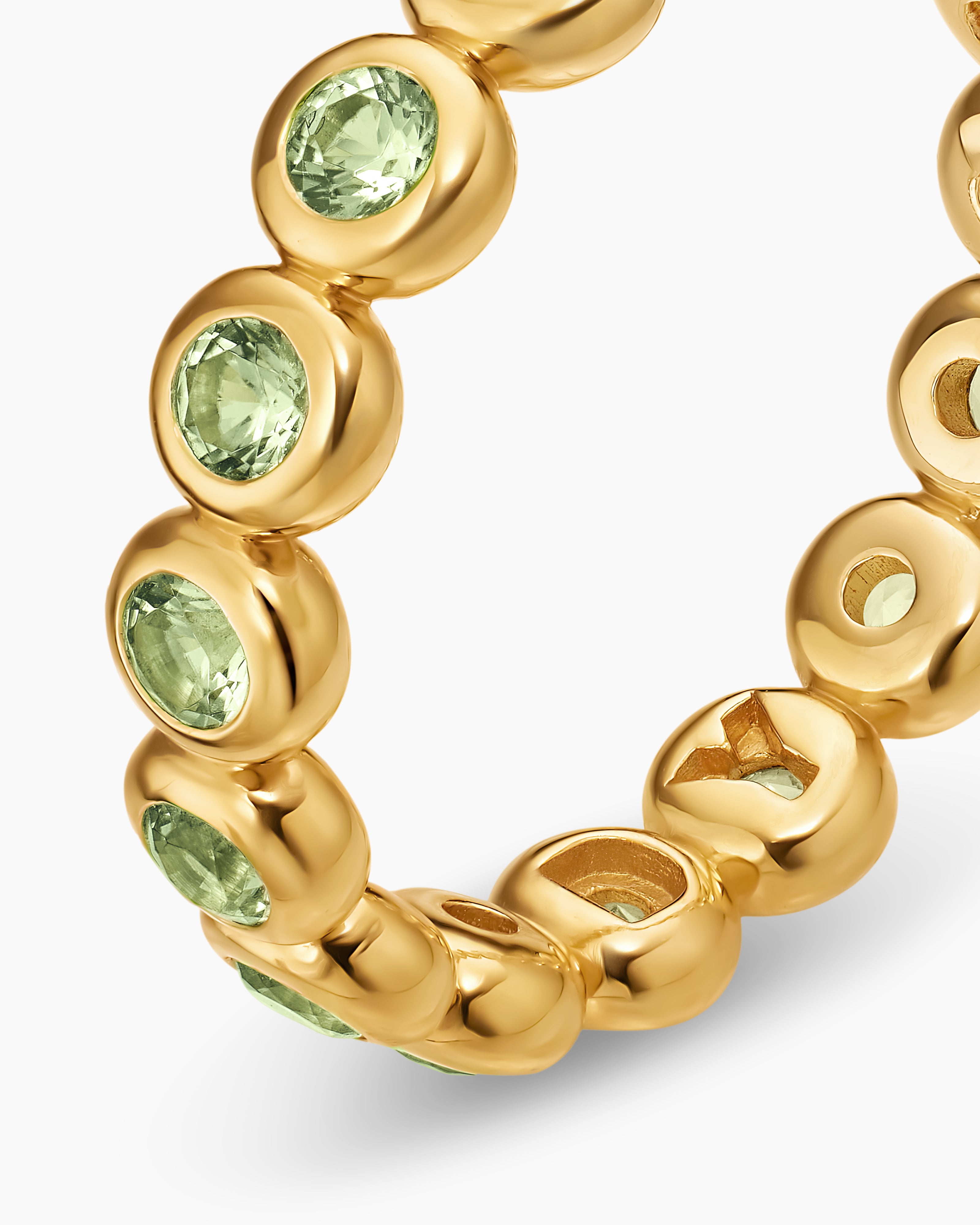 - Bezel-set peridot, total carat weight ranges from 0.93 to 1.13 (dependent on size)
