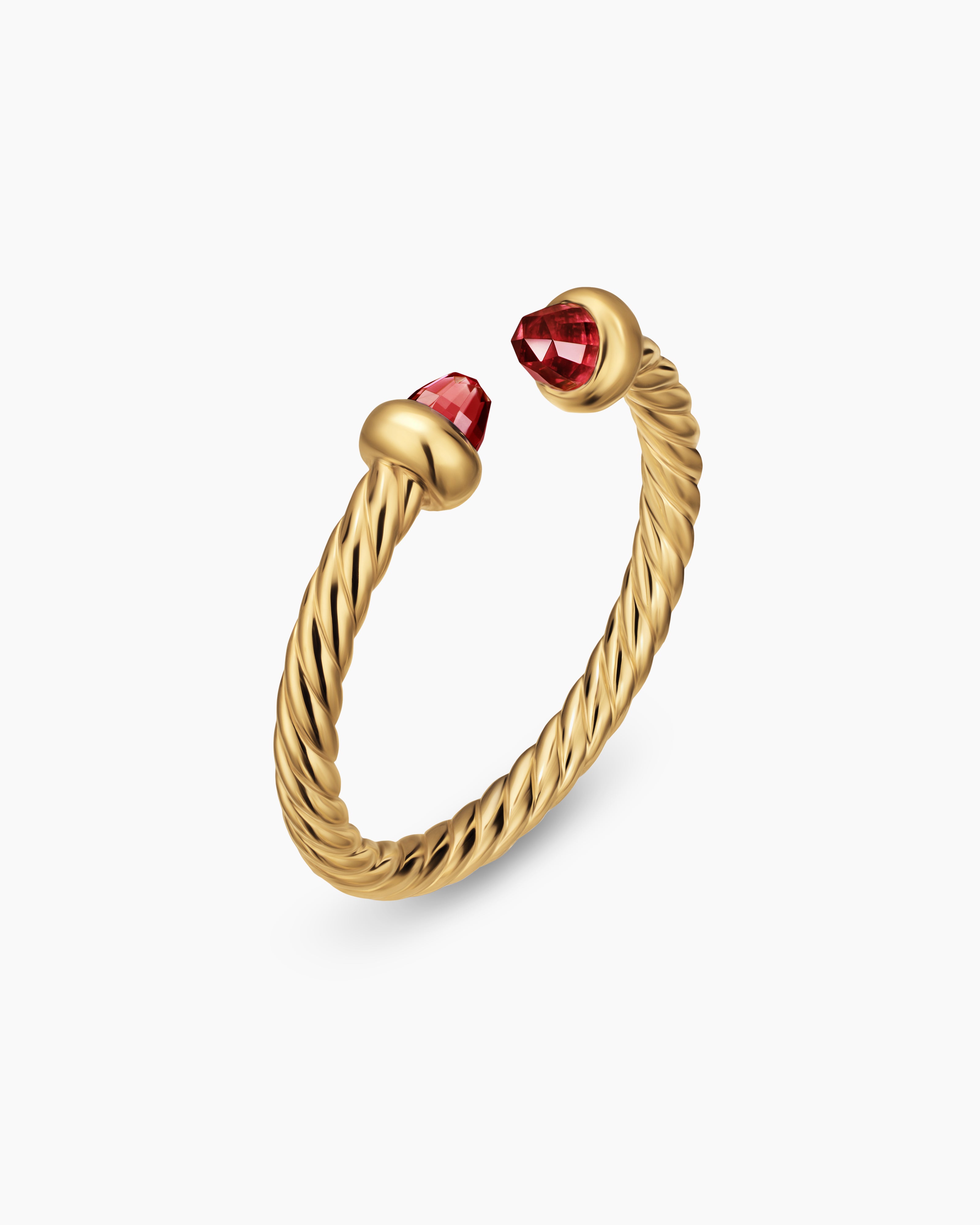 Micro Cablespira® Flex Open Ring 18K Yellow Gold with Rhodolite Garnets, 2.5mm