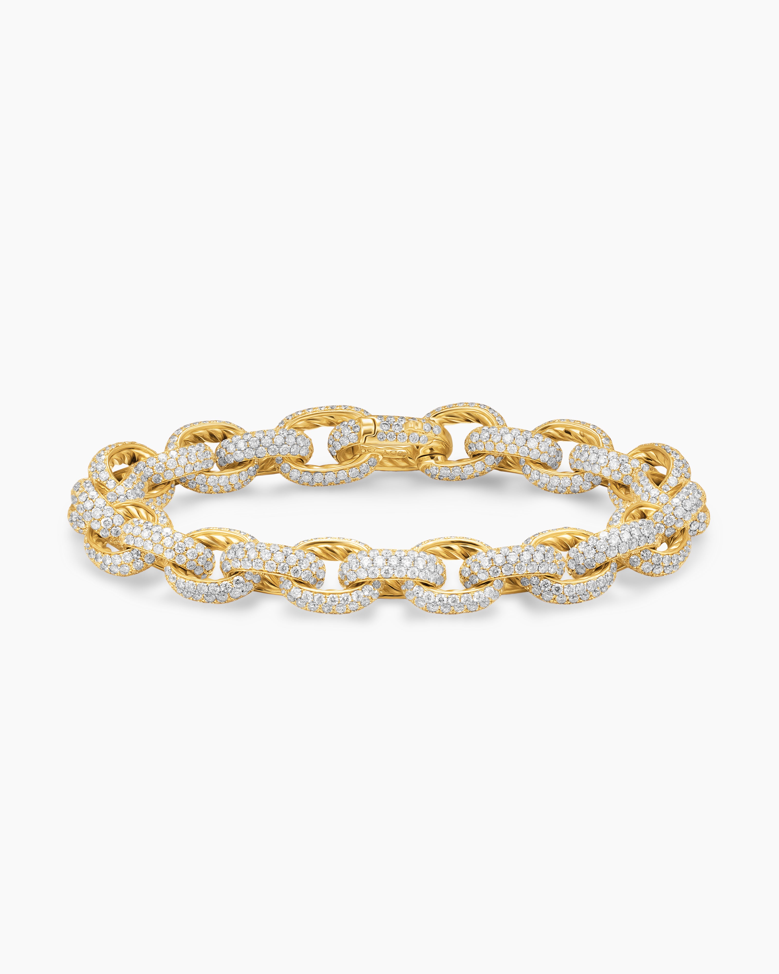 Men's Pavé Oval Chain Bracelet Yellow Gold with Diamonds
