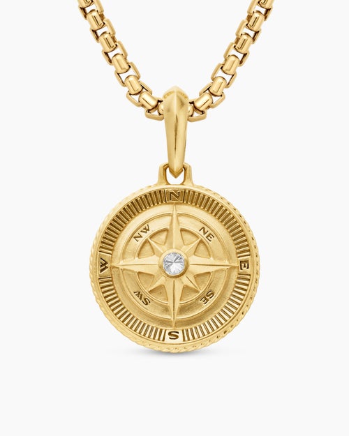 Maritime® Compass Amulet 18K Yellow Gold with Center Diamond, 20mm