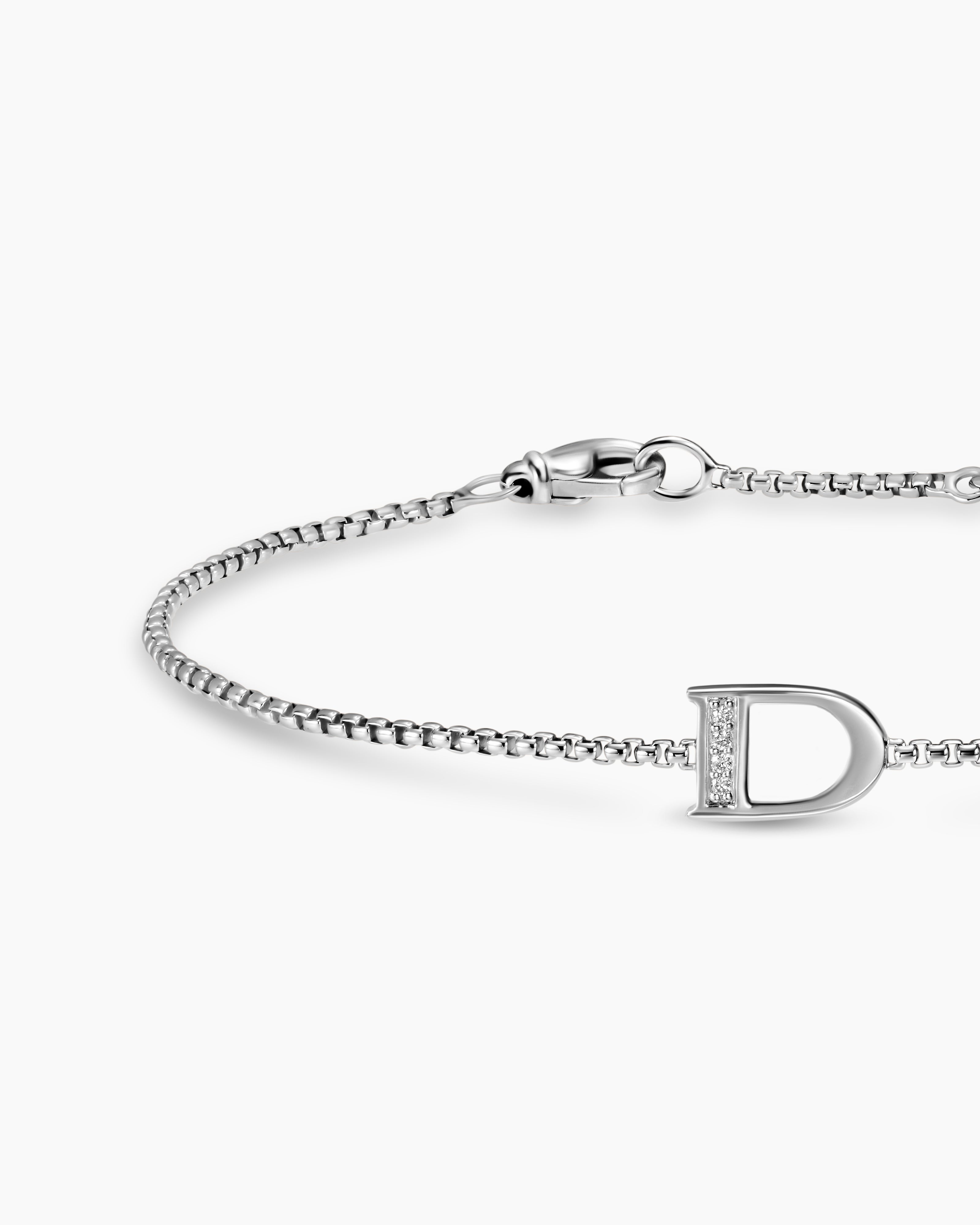 Petite Initial Chain Bracelet Sterling Silver with Diamond D