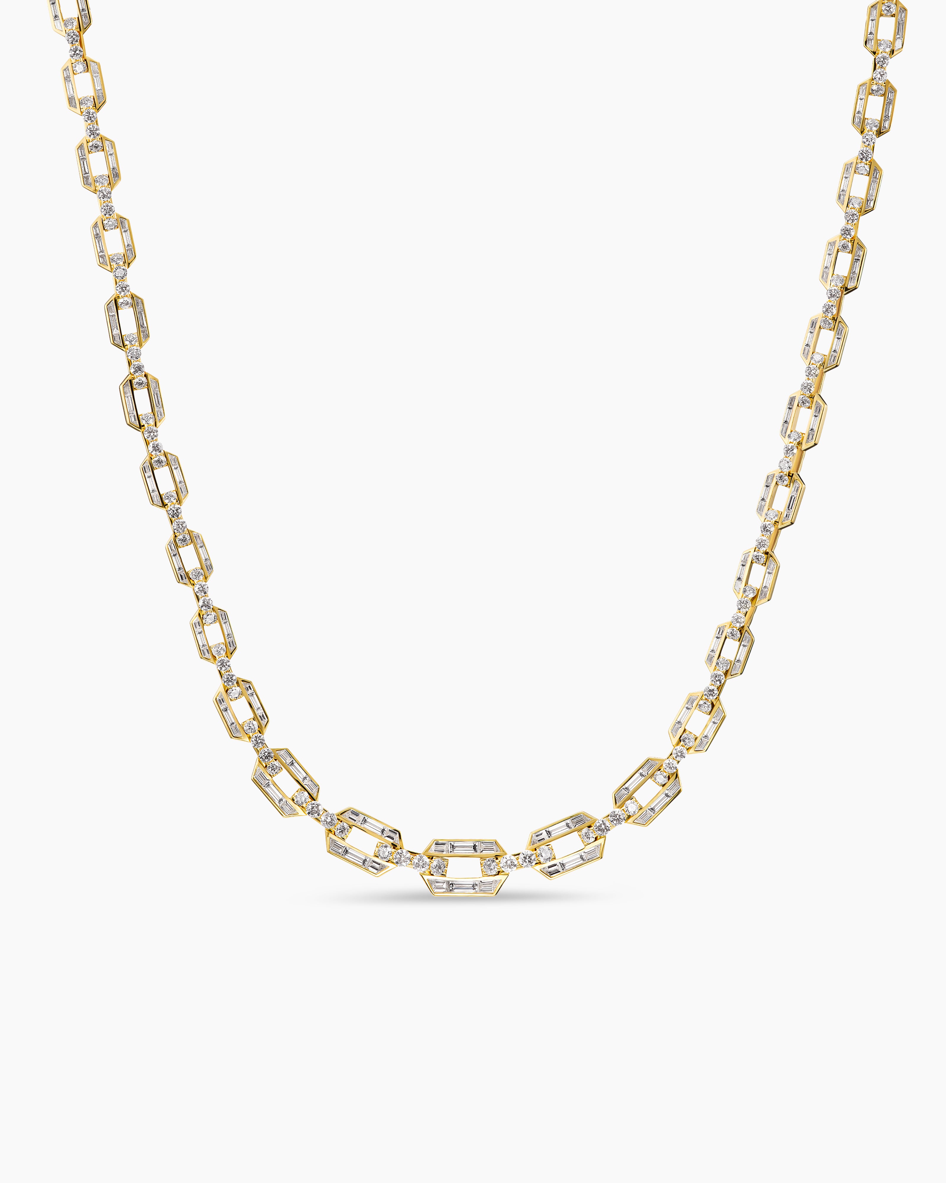 Deco Graduated Chain Link Necklace Yellow Gold with Diamonds