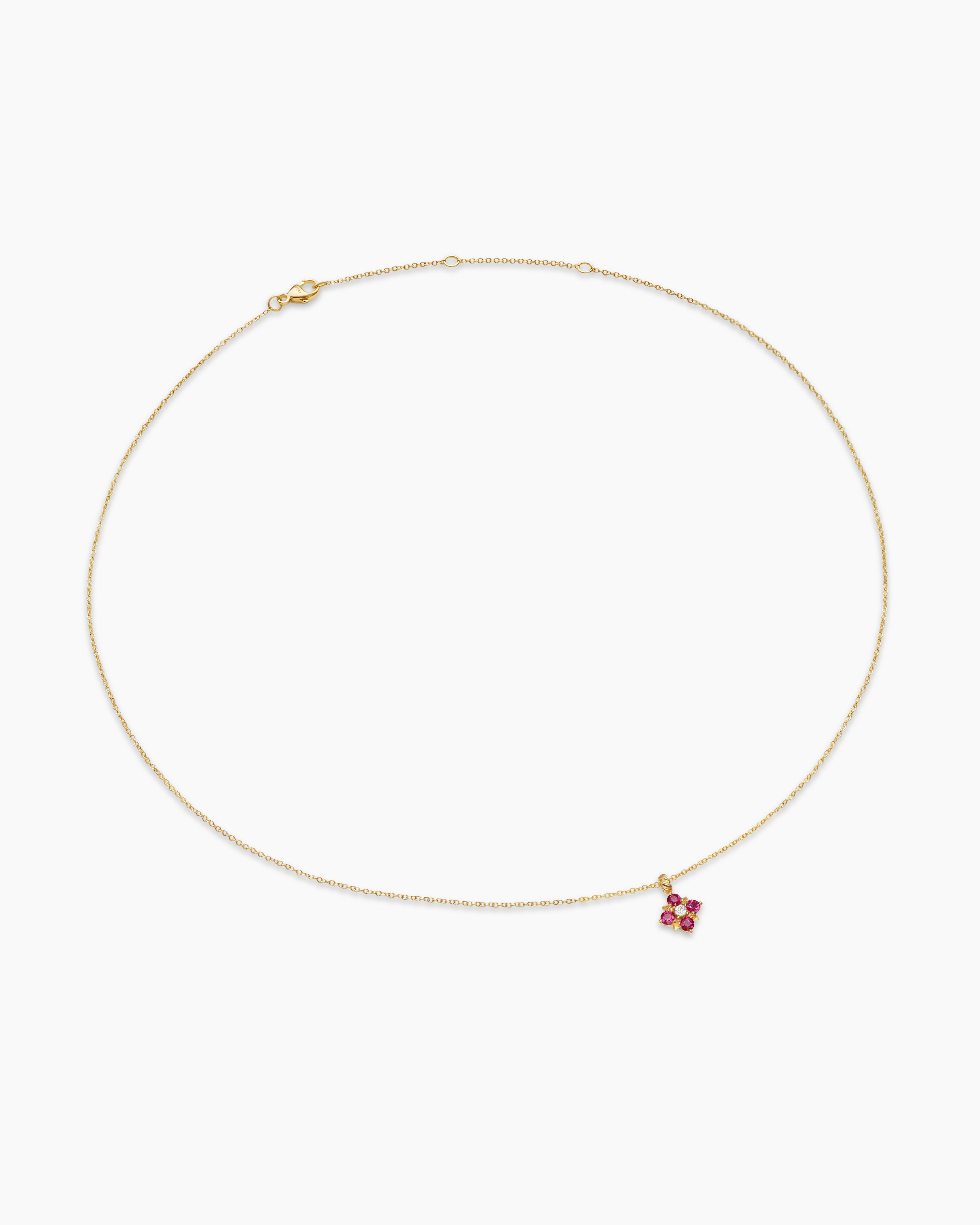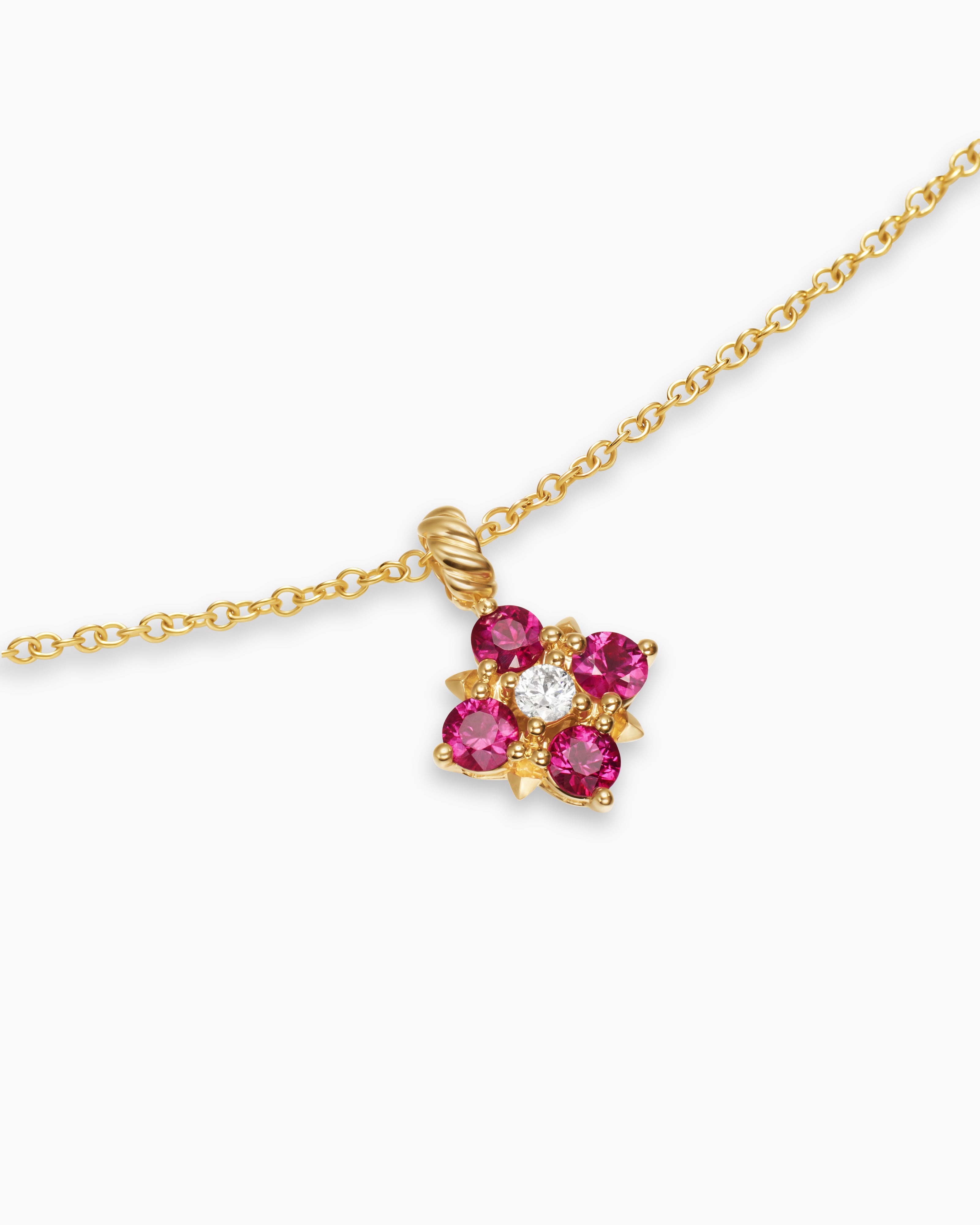 Petite Modern Renaissance® Pendant Necklace 18K Yellow Gold with Rubies and Diamond, 9.2mm