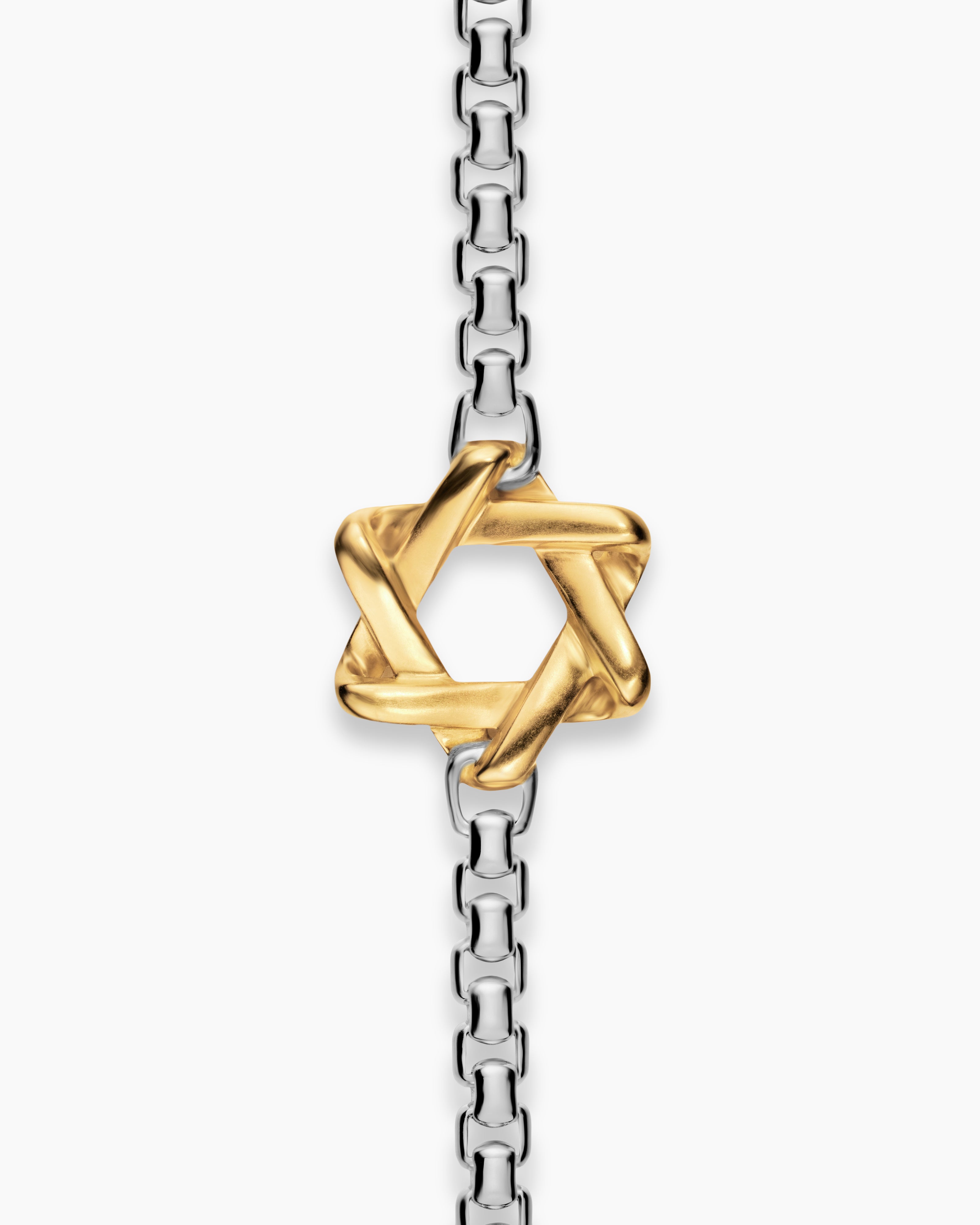 Star of David Station Necklace Sterling Silver with 14K Yellow Gold, 3.6mm