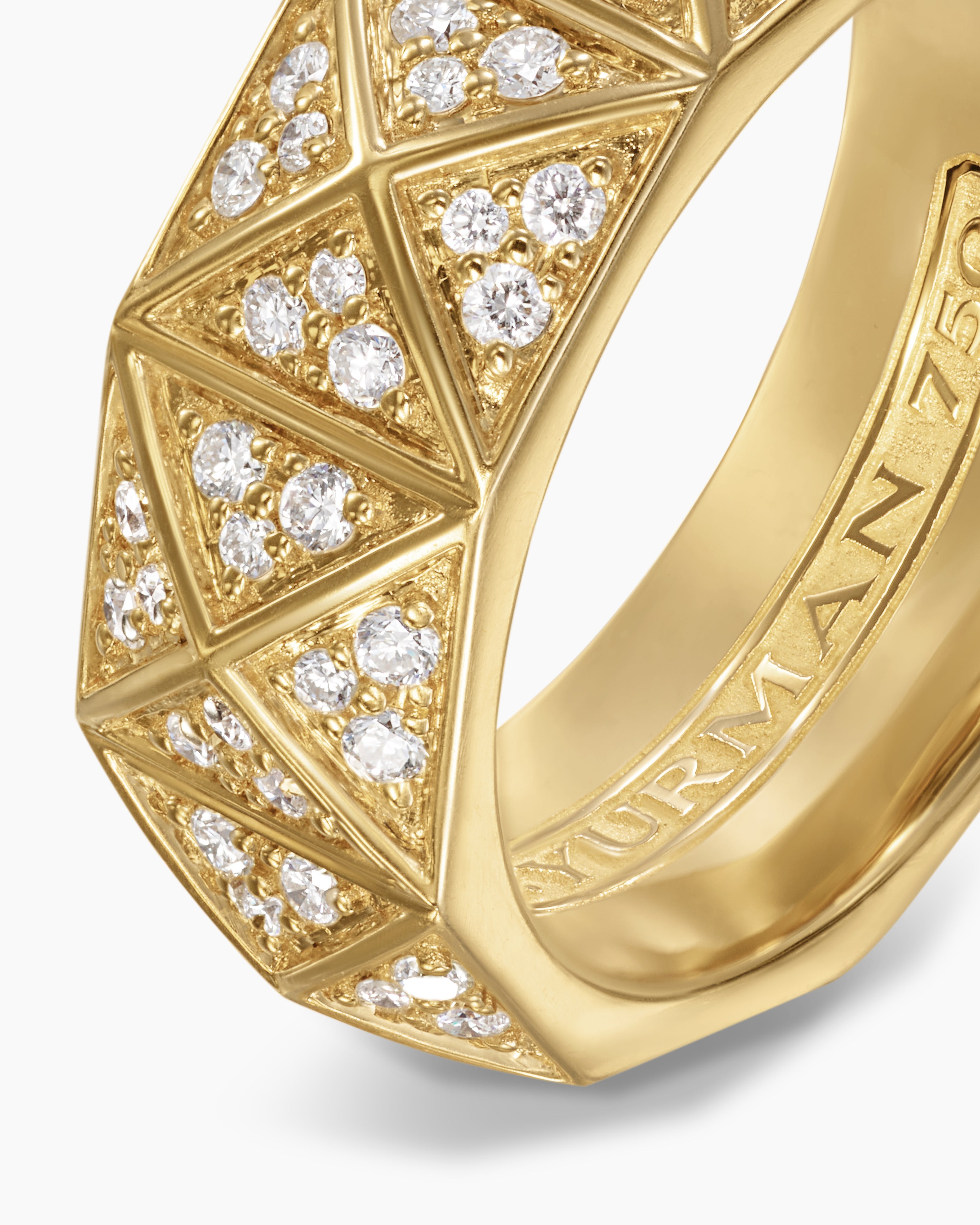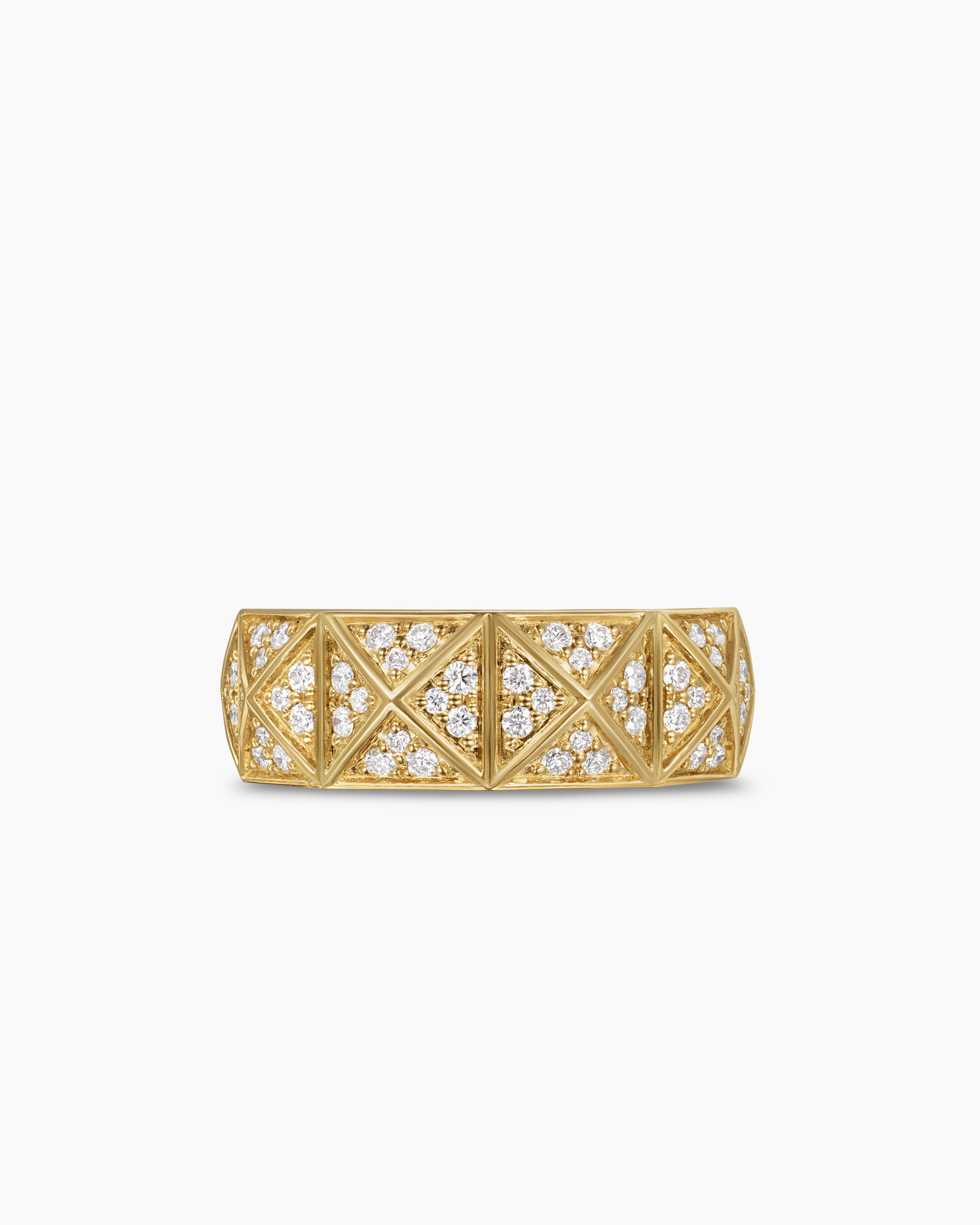 Pyramid Band Ring 18K Yellow Gold with Diamonds, 8mm