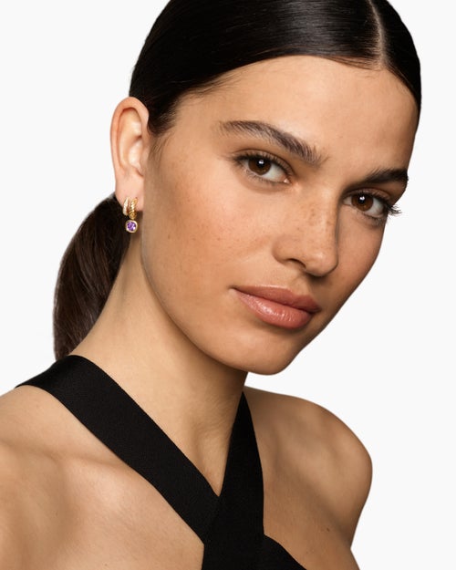 DY Mercer® Color Two Row Drop Earrings 18K Yellow Gold with Amethyst and Diamonds, 19.5mm
