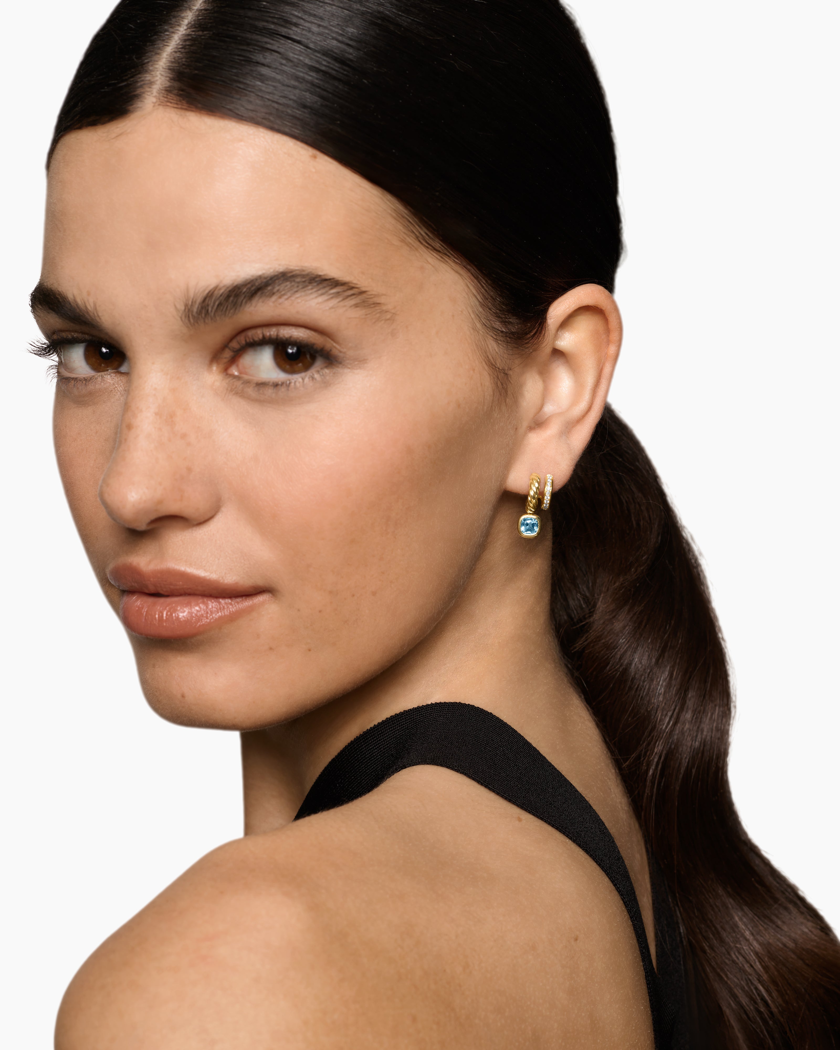 DY Mercer® Color Two Row Drop Earrings 18K Yellow Gold with Sky Blue Topaz and Diamonds, 19.5mm