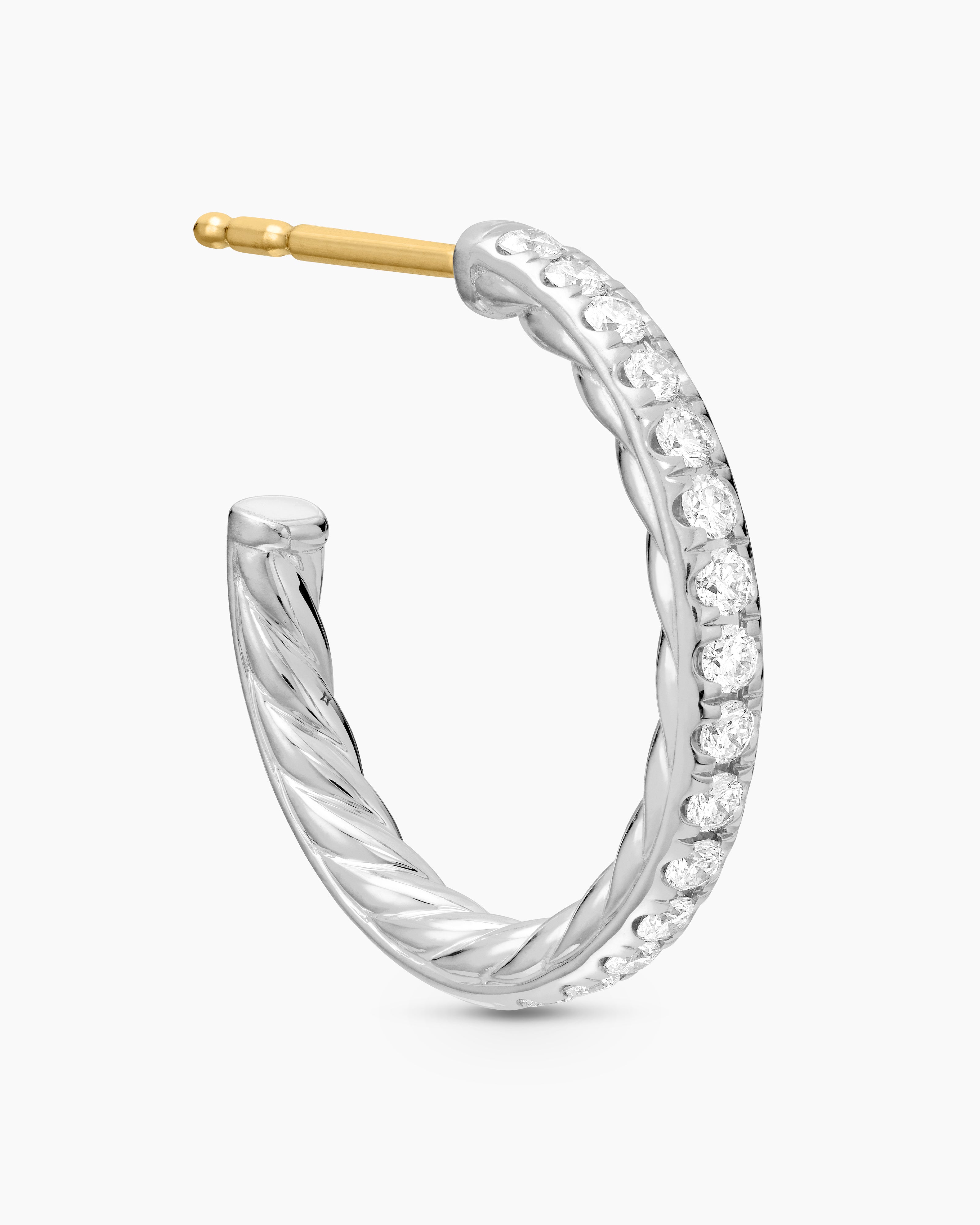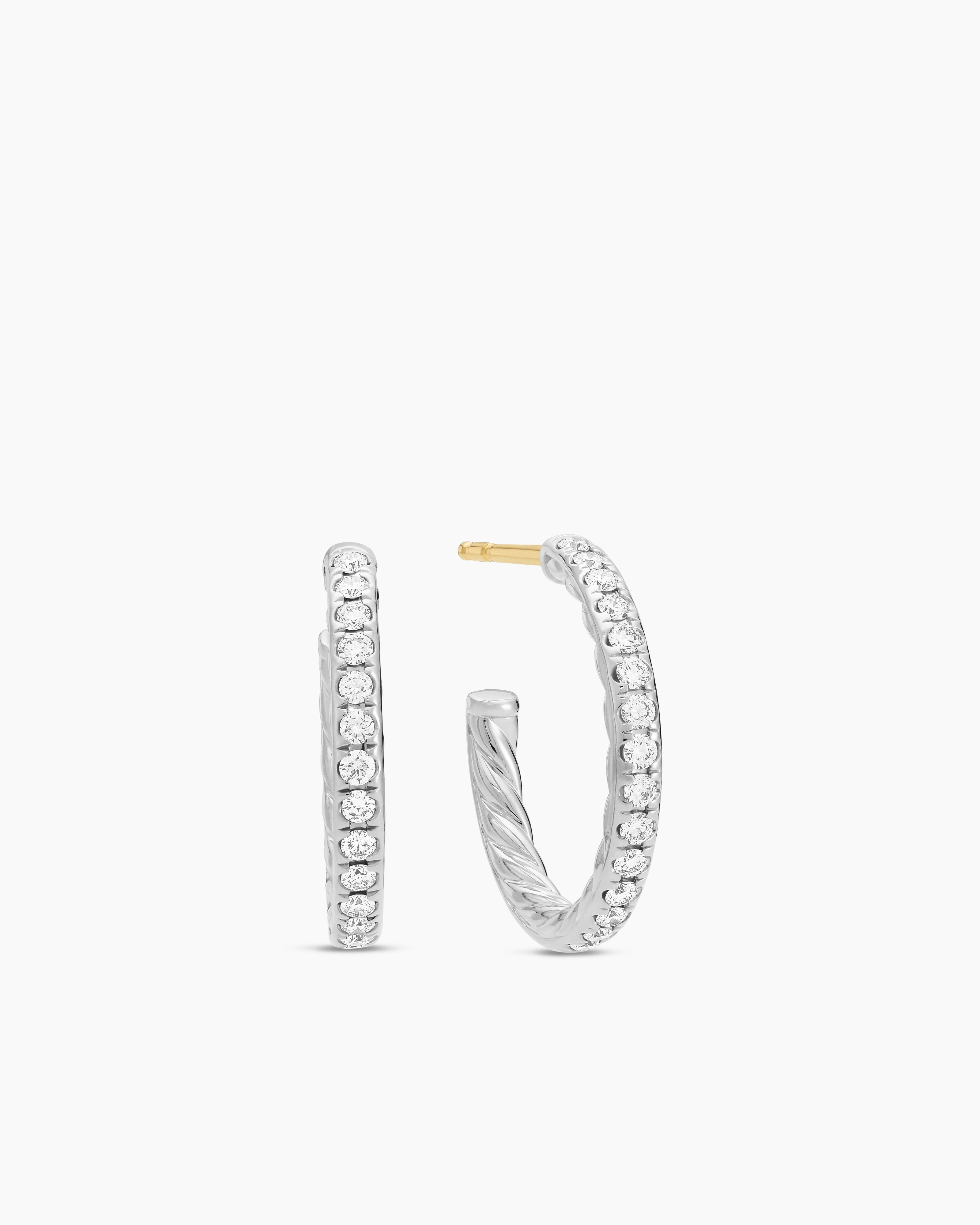 Pavé Hoop Earrings Sterling Silver with Diamonds, 19mm