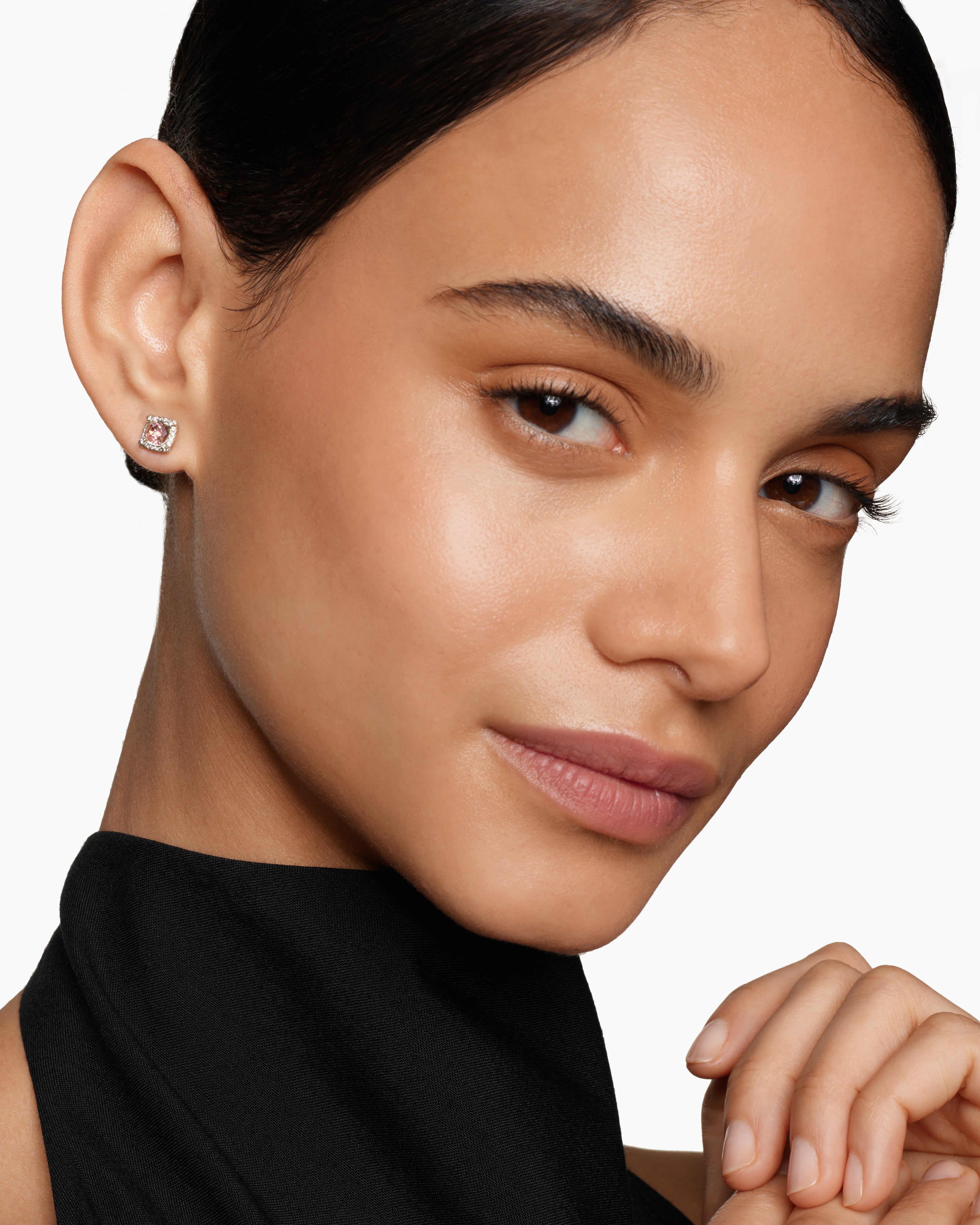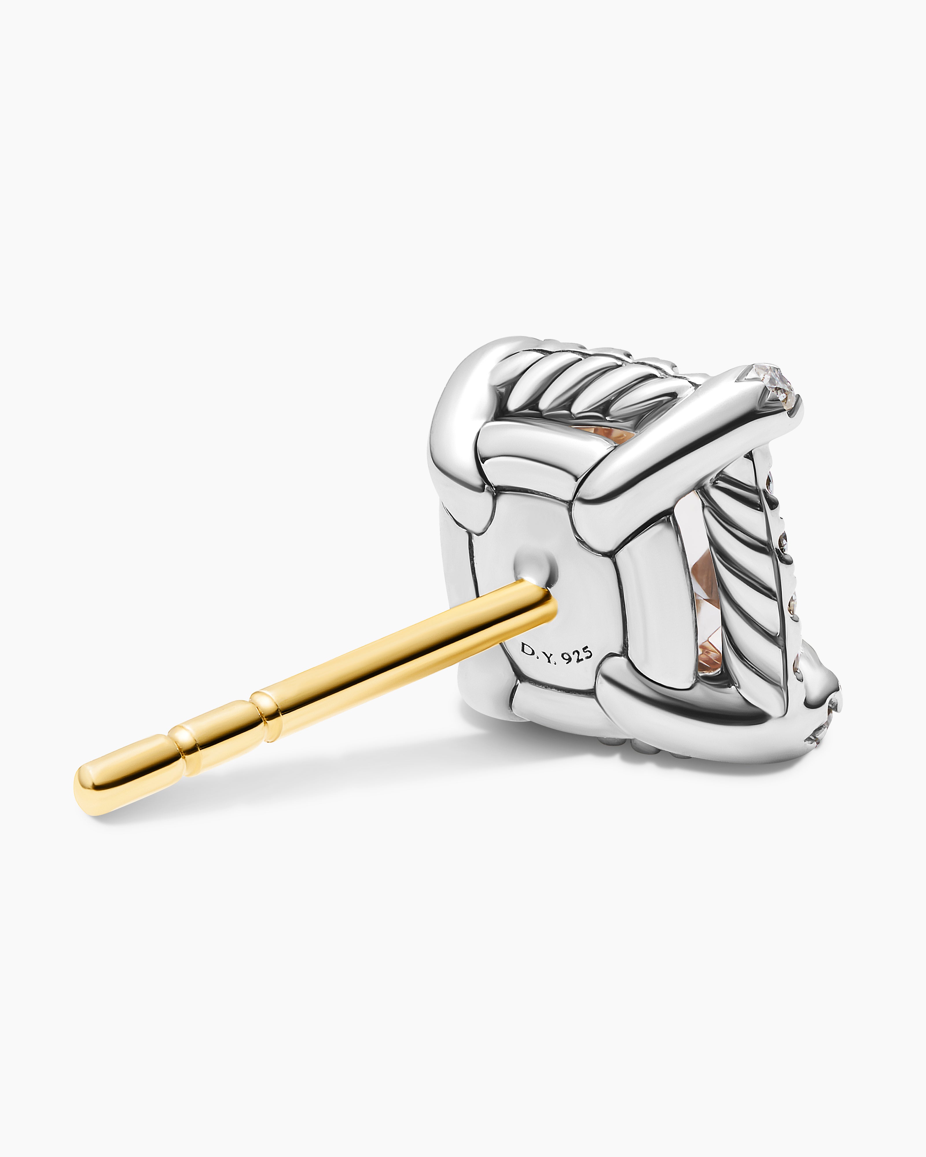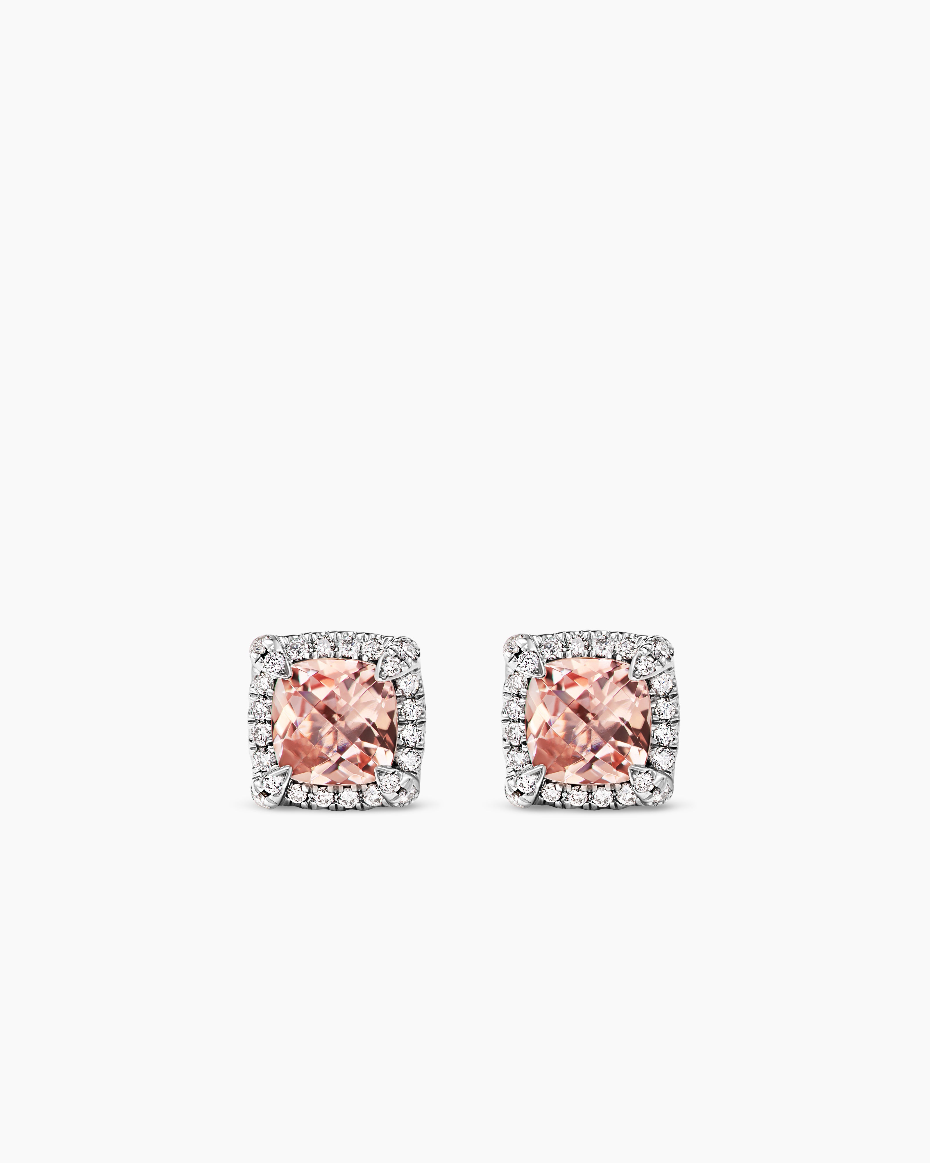 Petite Chatelaine® Pavé Bezel Stud Earrings Sterling Silver with Morganite and Diamonds, 5mm
