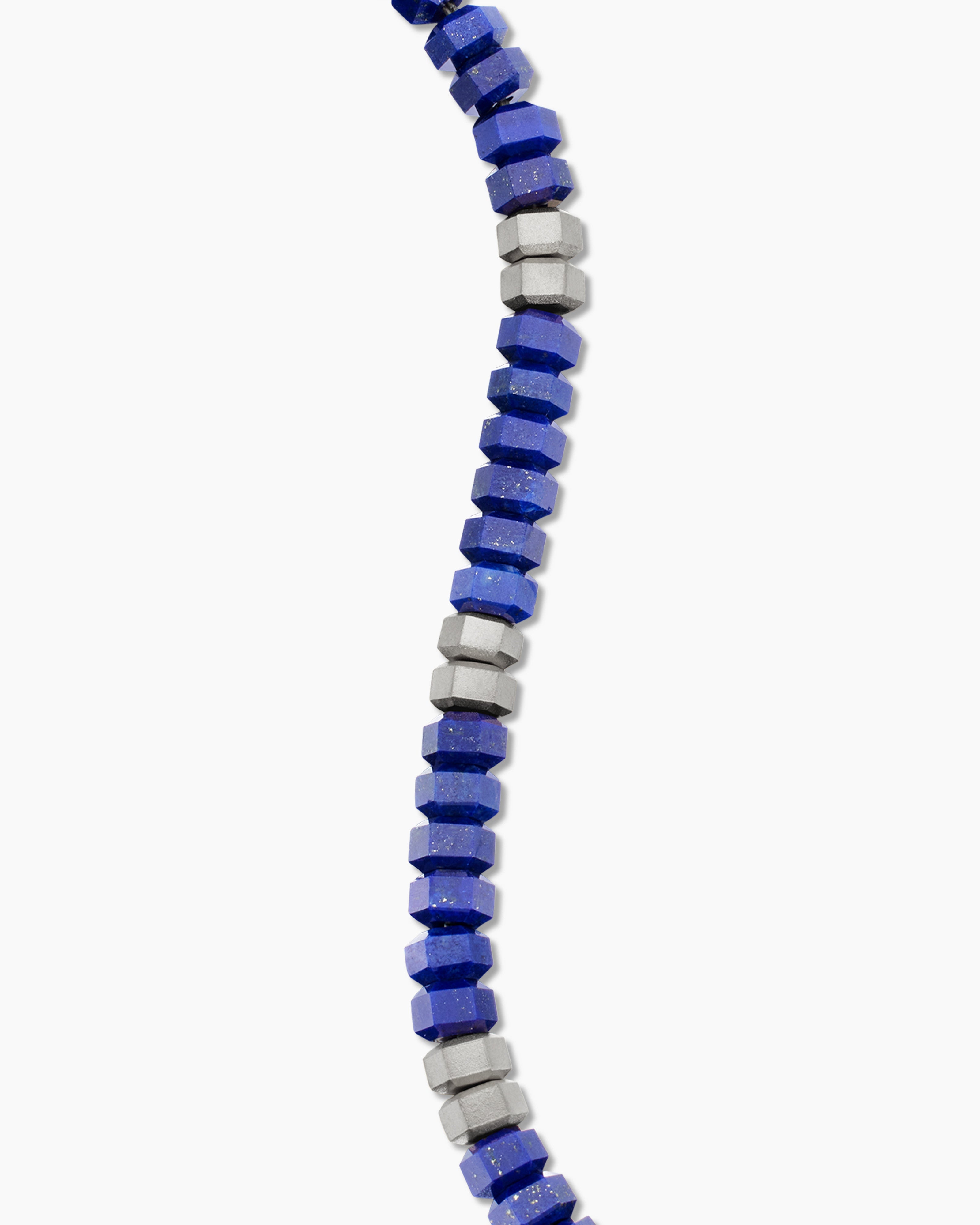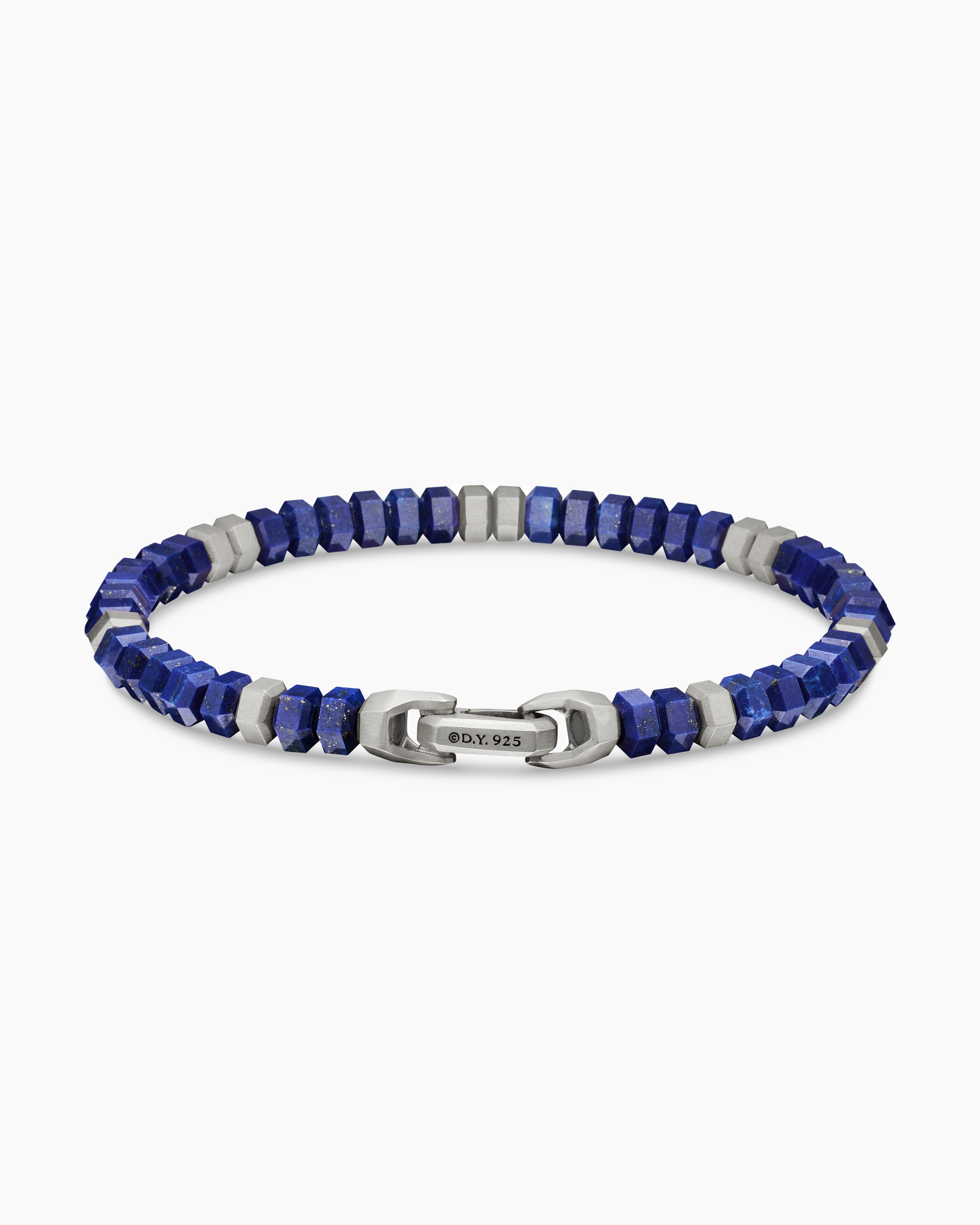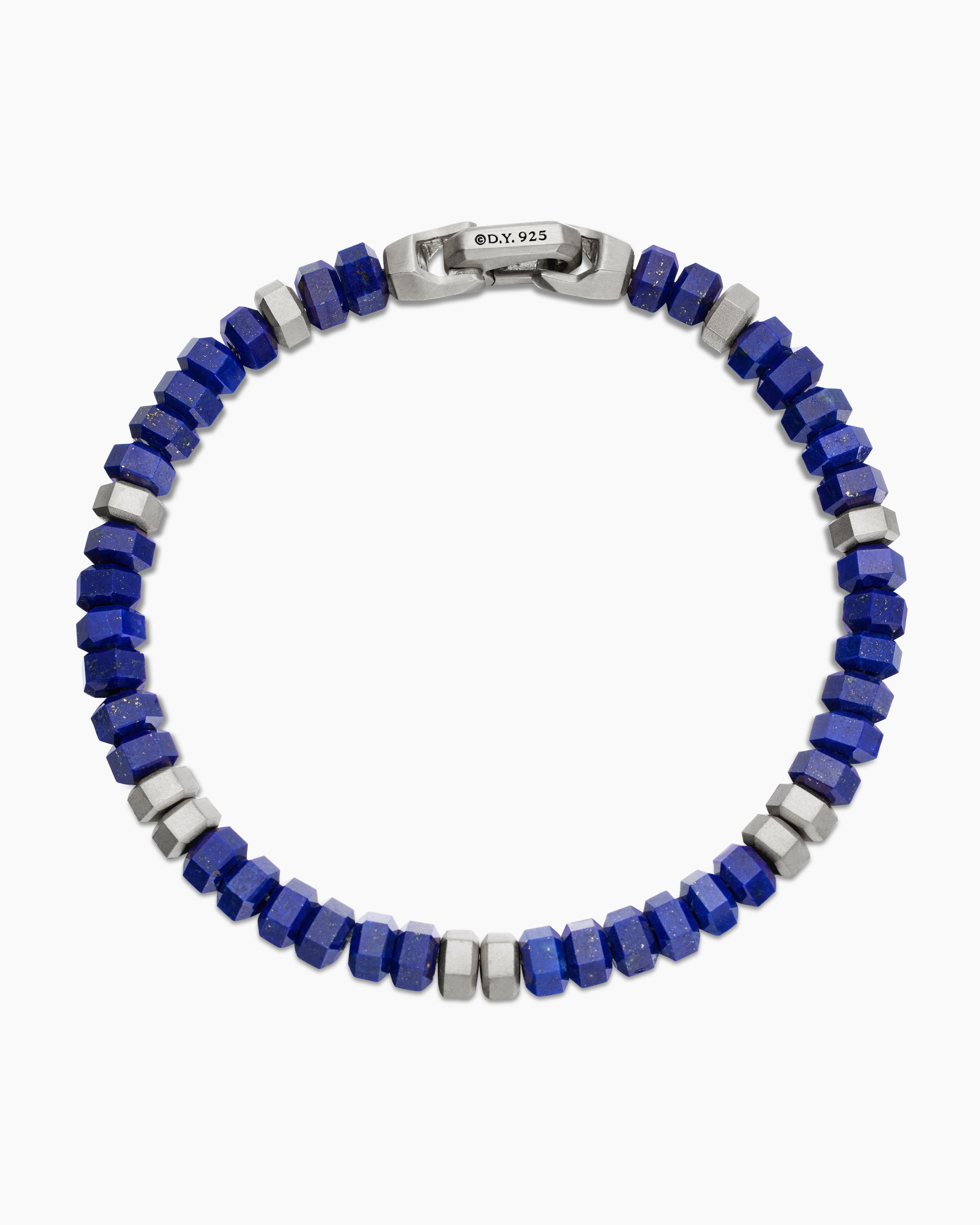 Hex Bead Bracelet Sterling Silver with Lapis, 6mm