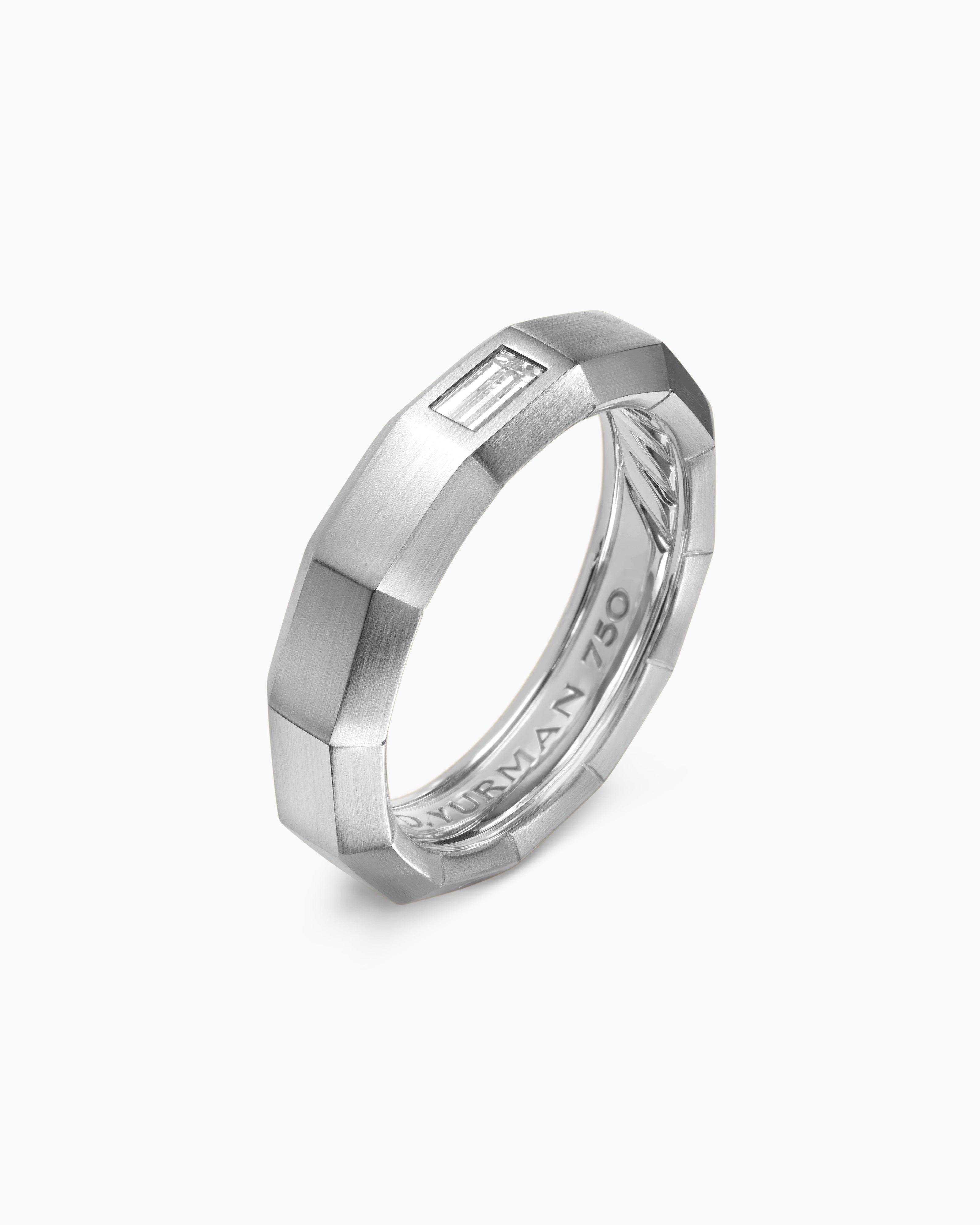 Faceted Band Ring 18ct White Gold with Centre Diamond, 6mm