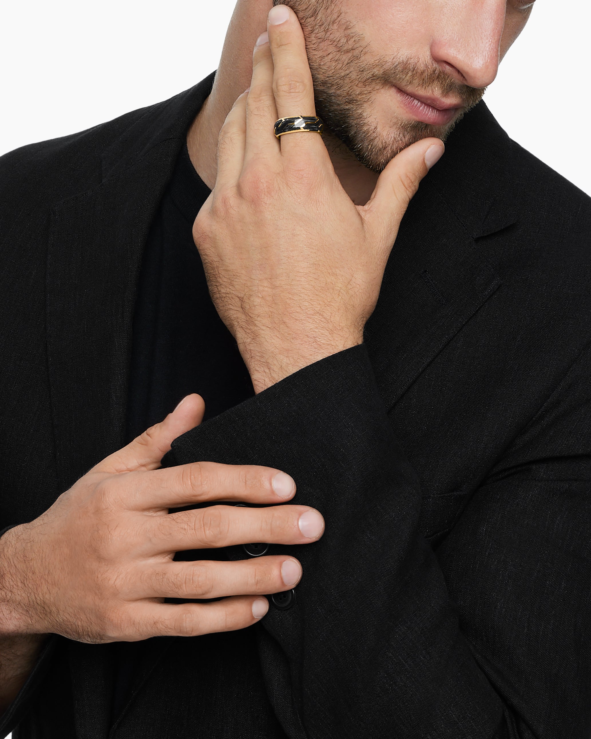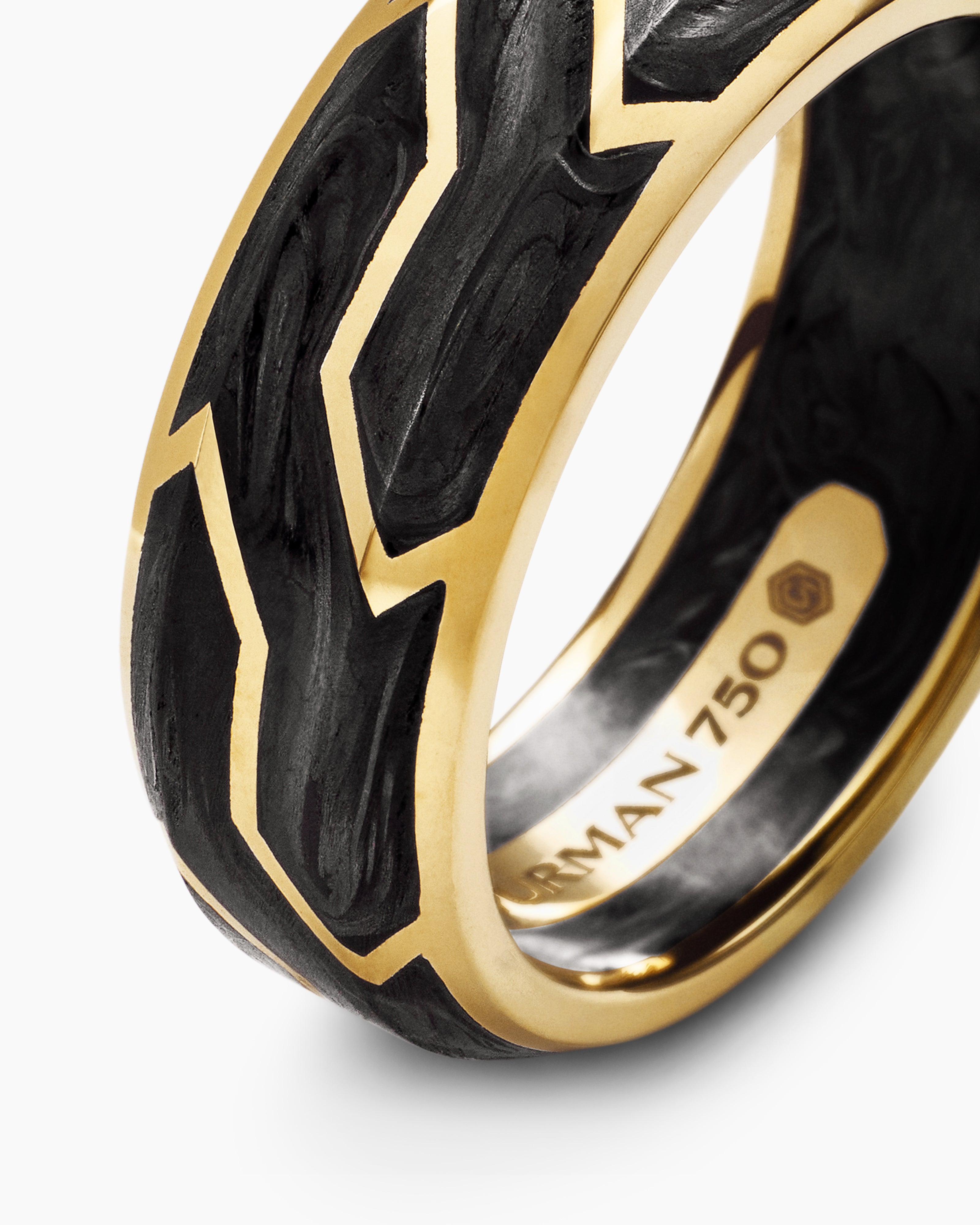 Forged Carbon Band Ring 18ct Yellow Gold, 8.5mm