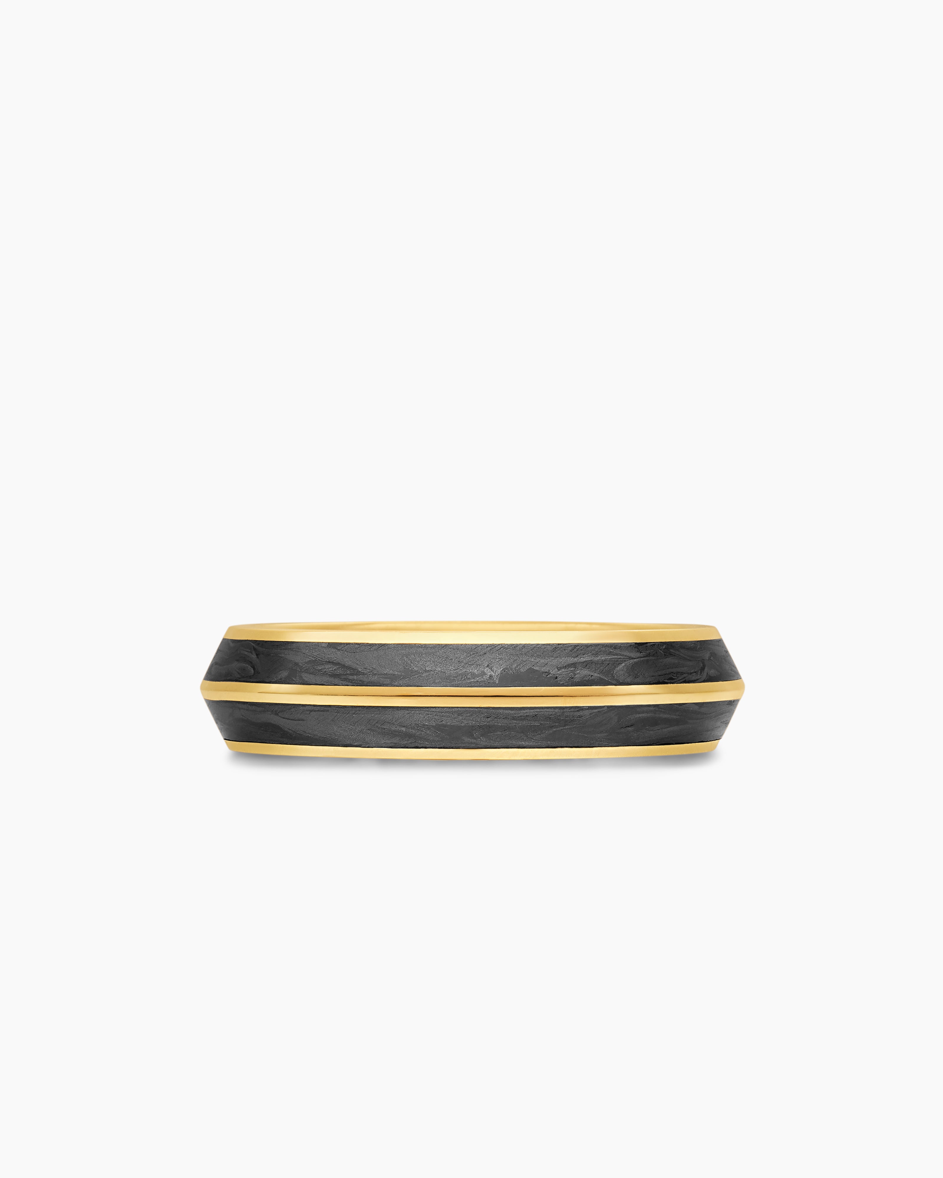 Knife Edge Band Ring 18ct Yellow Gold with Forged Carbon, 6mm