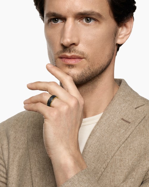 Forged carbon is a lightweight yet strong composite originally used in aeronautics and sports cars. For jewellery, David Yurman pioneered a technique which fuses the modern material and precious metal into innovative, graphic designs.