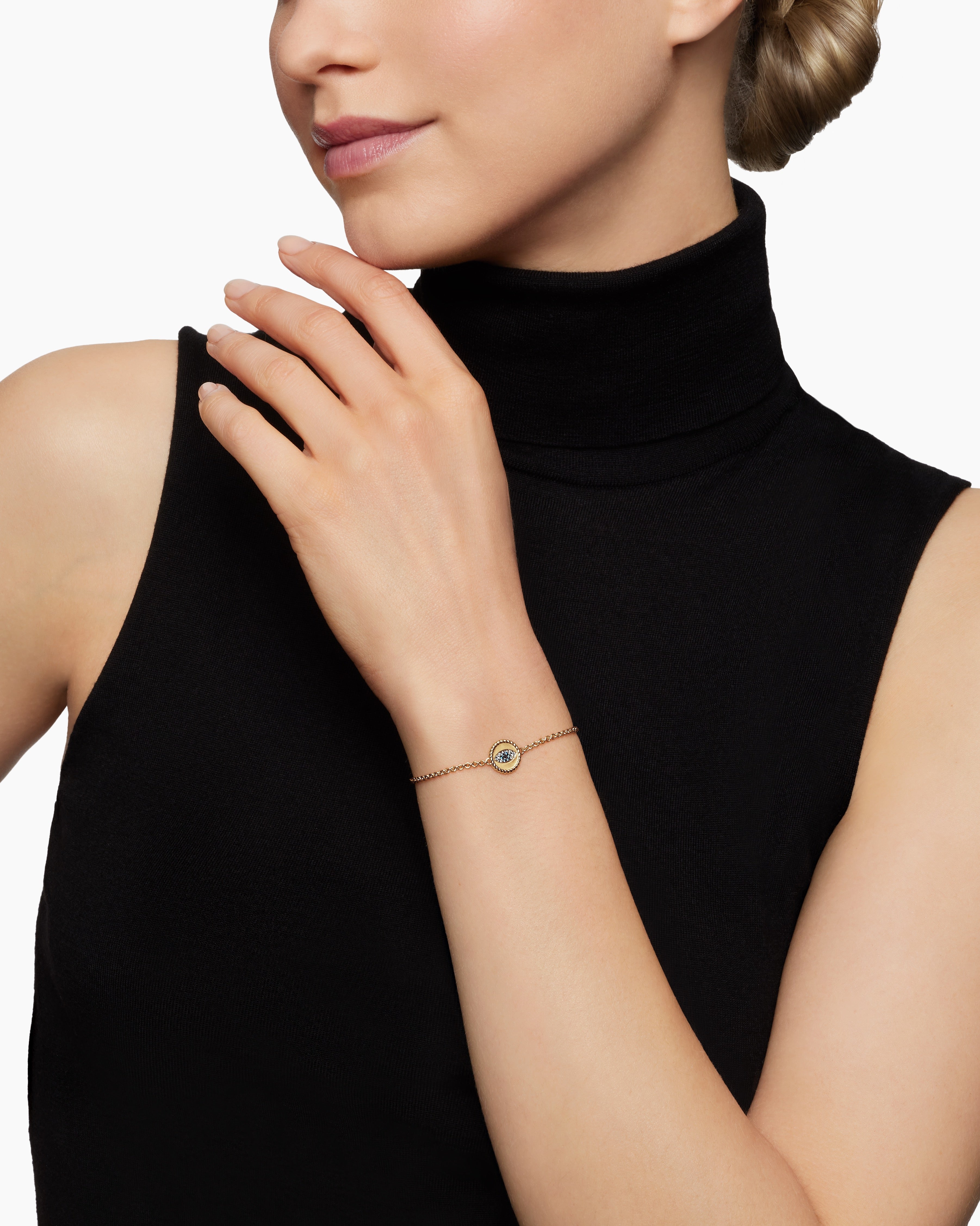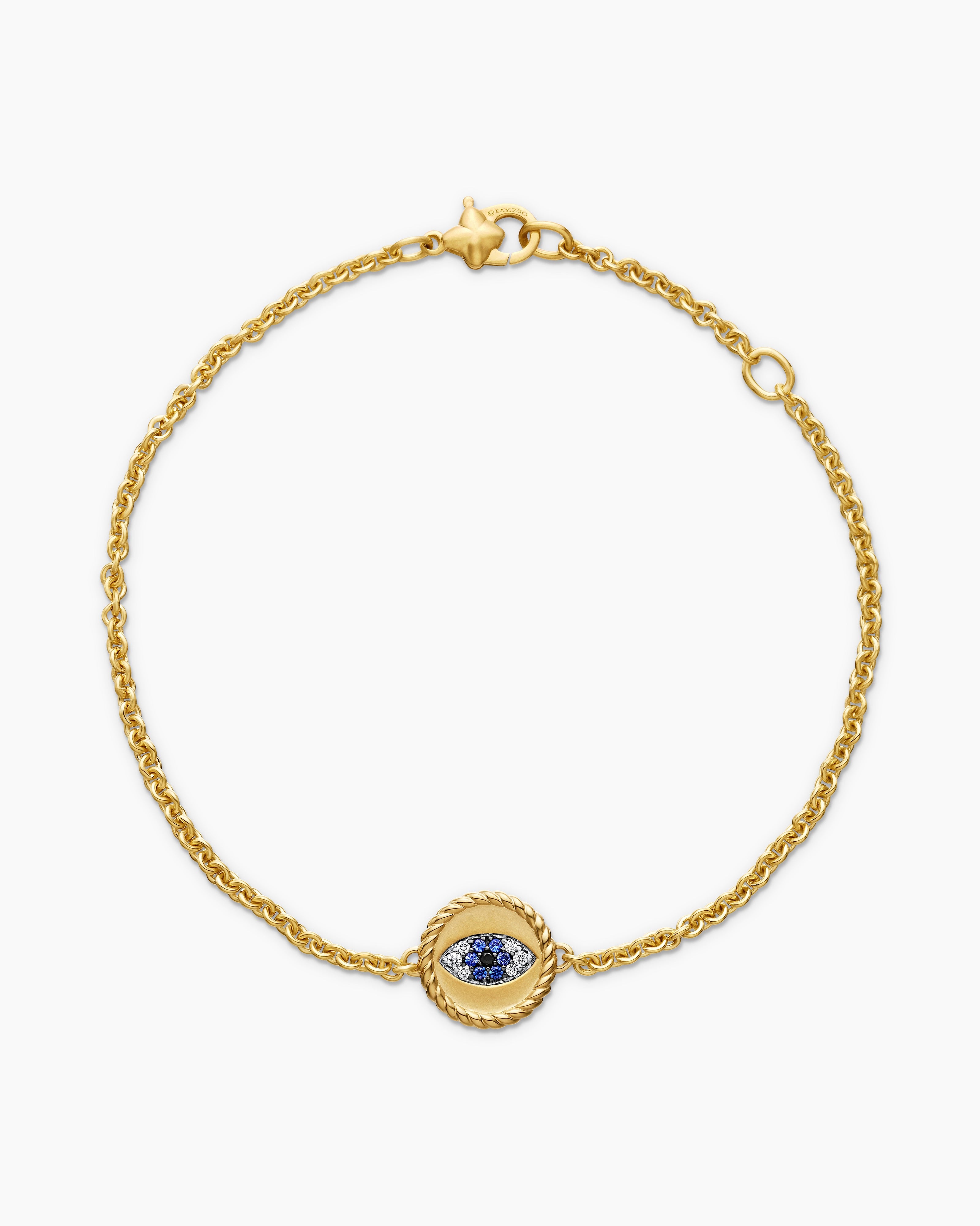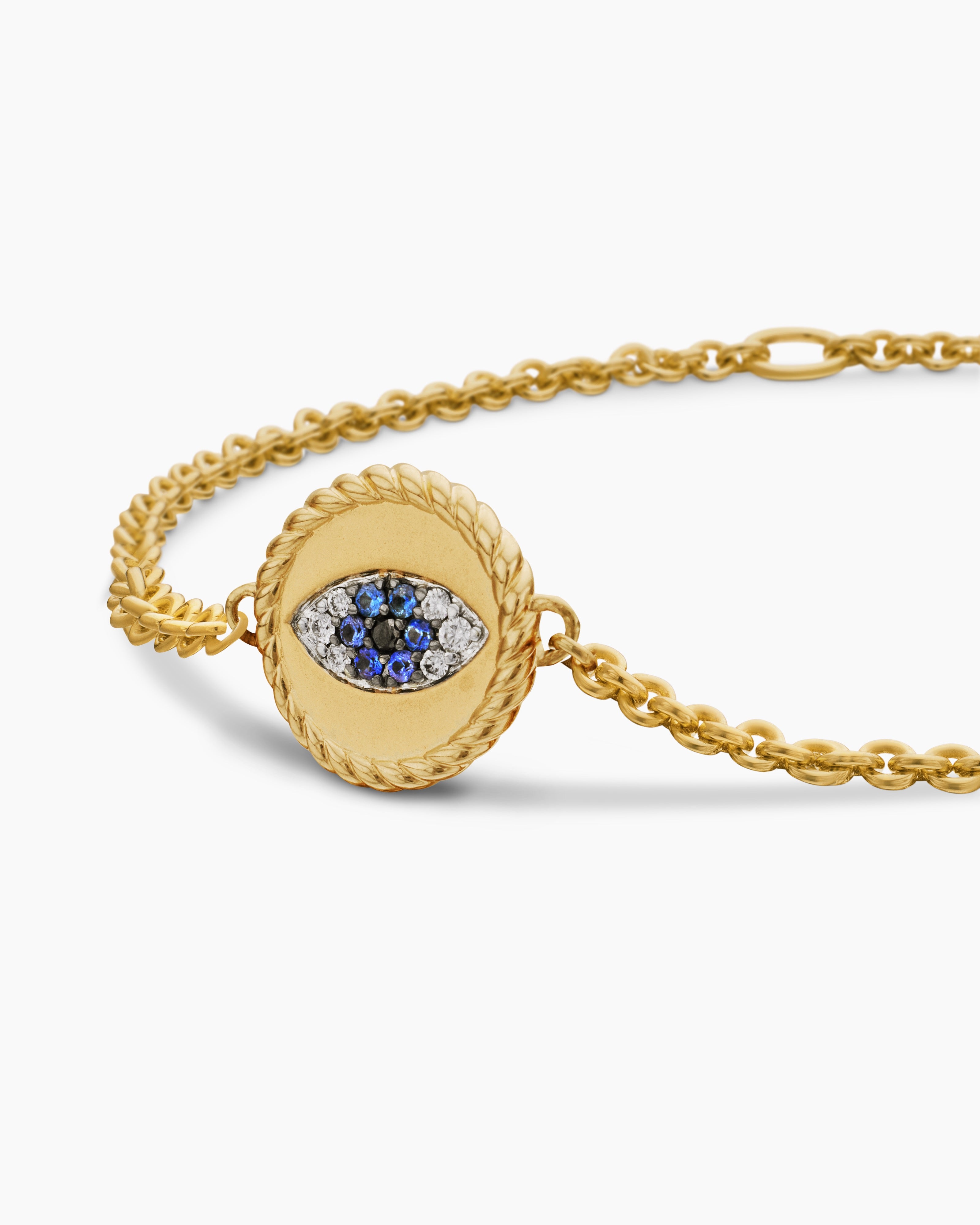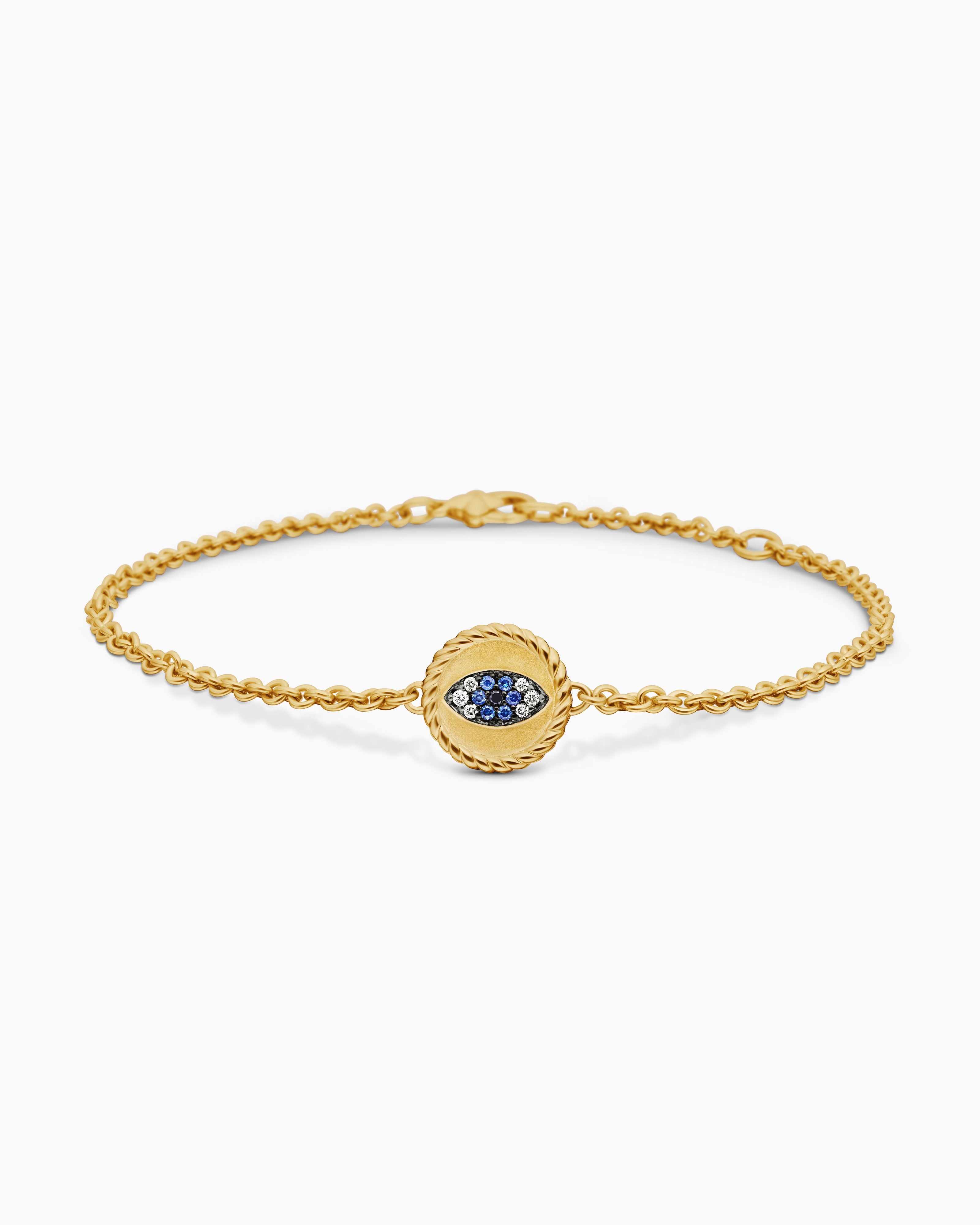 Cable Collectibles® Evil Eye Bracelet 18ct Yellow Gold with Pavé Blue Sapphires and Diamonds, 2mm