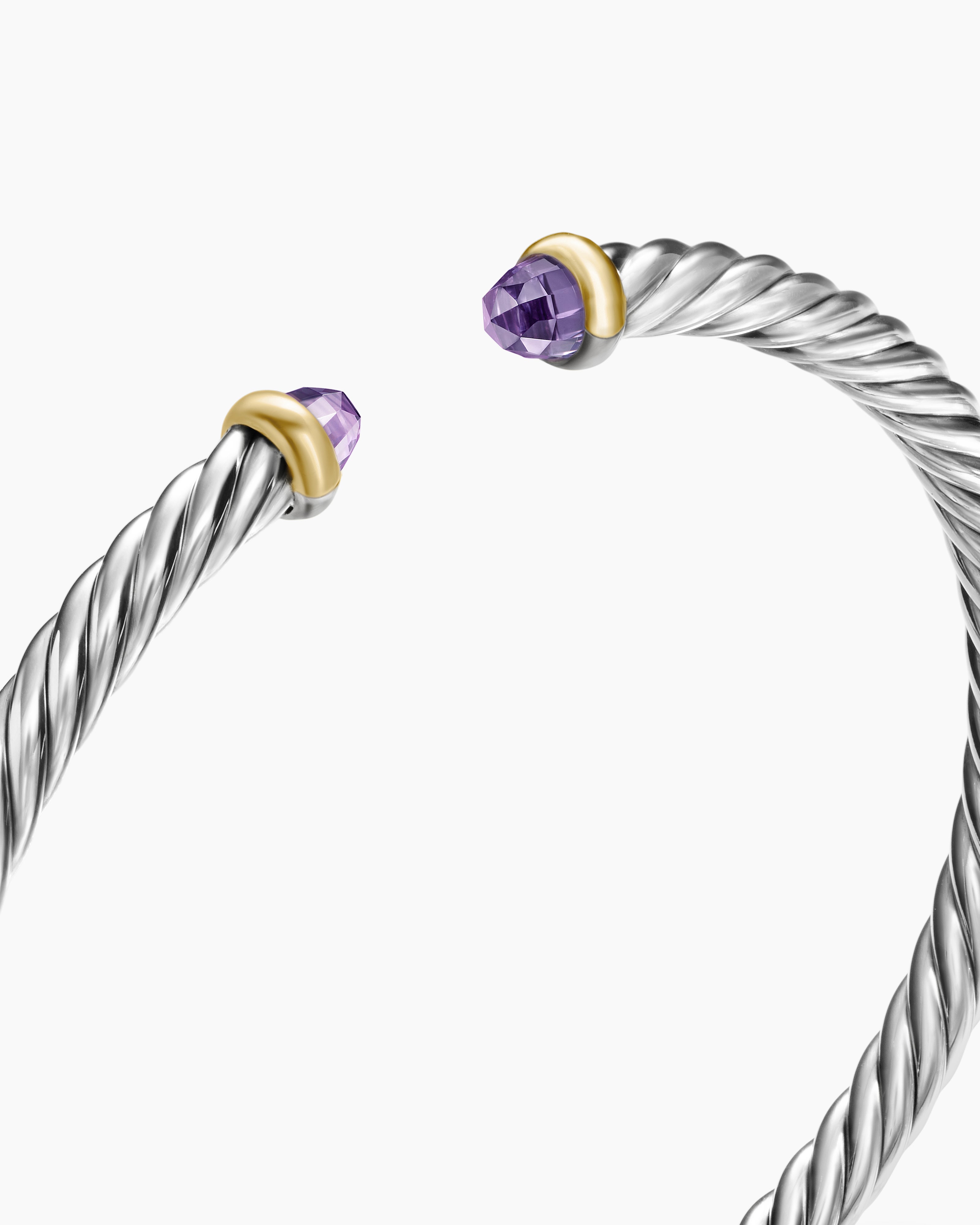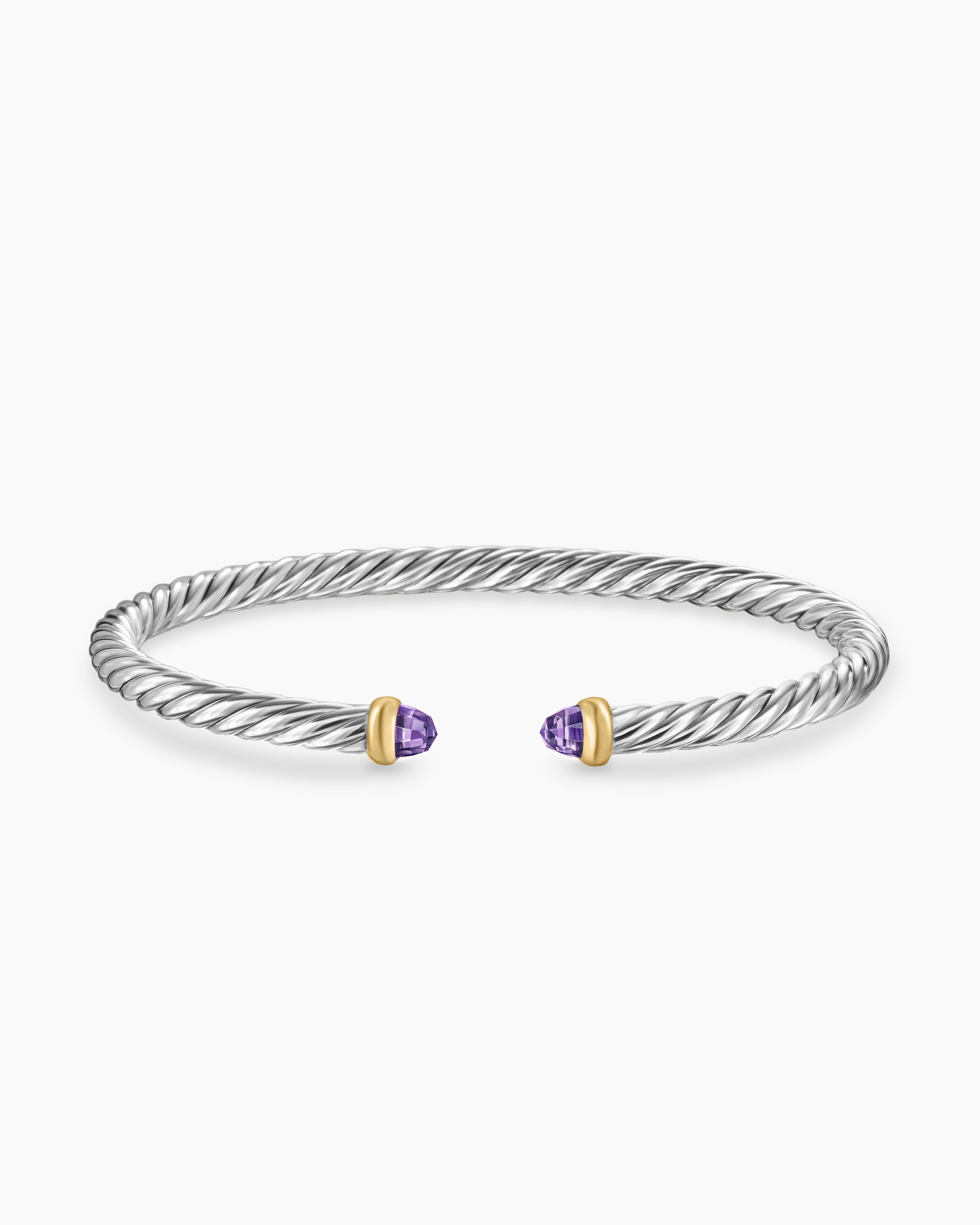 Cable Flex® Bracelet Sterling Silver with 14ct Yellow Gold and Amethyst, 4mm