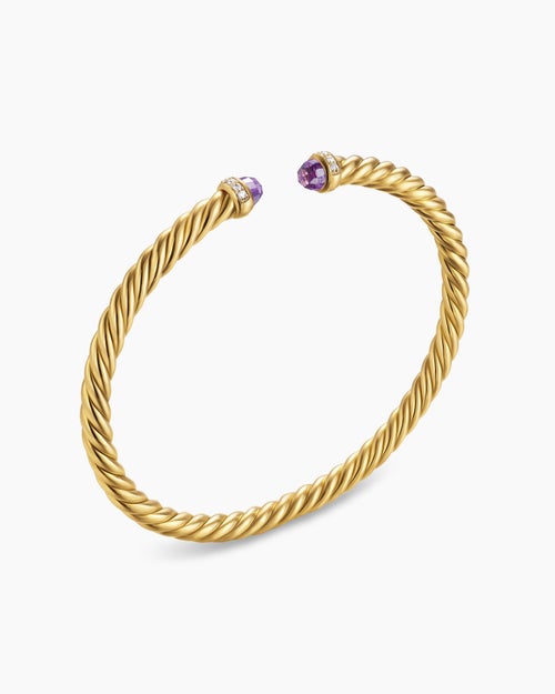 Cablespira® Flex Bracelet 18ct Yellow Gold with Amethyst and Diamonds, 4mm