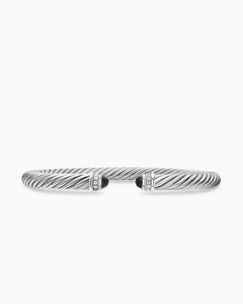 Classic Cable Bracelet Sterling Silver with Black Onyx and Diamonds, 5mm
