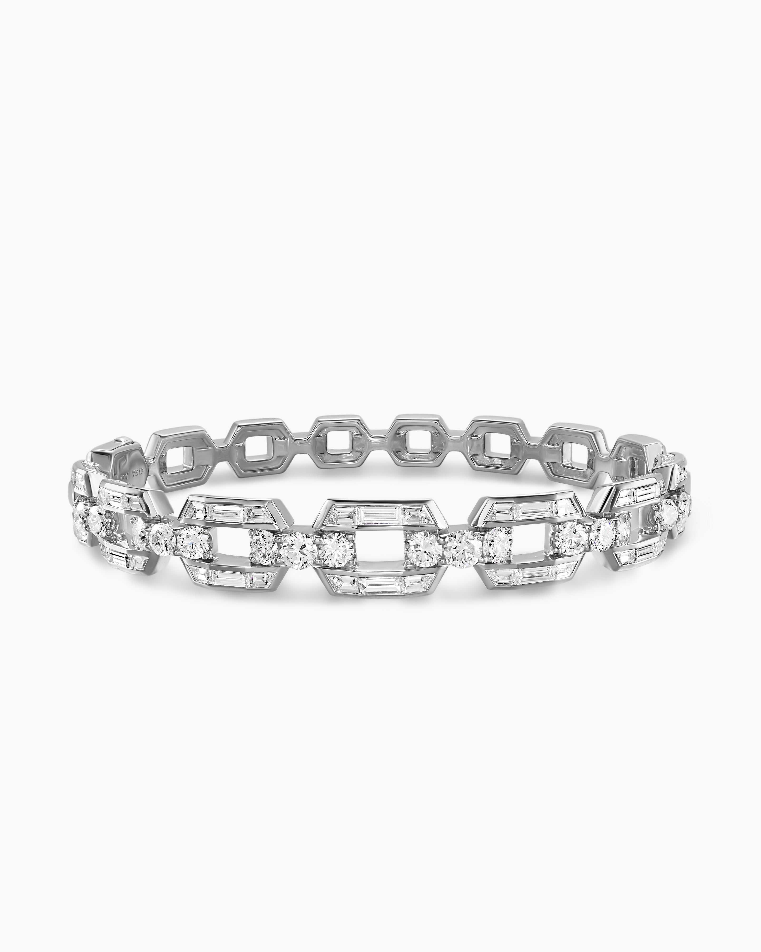 Deco Chain Bangle Bracelet White Gold with Diamonds