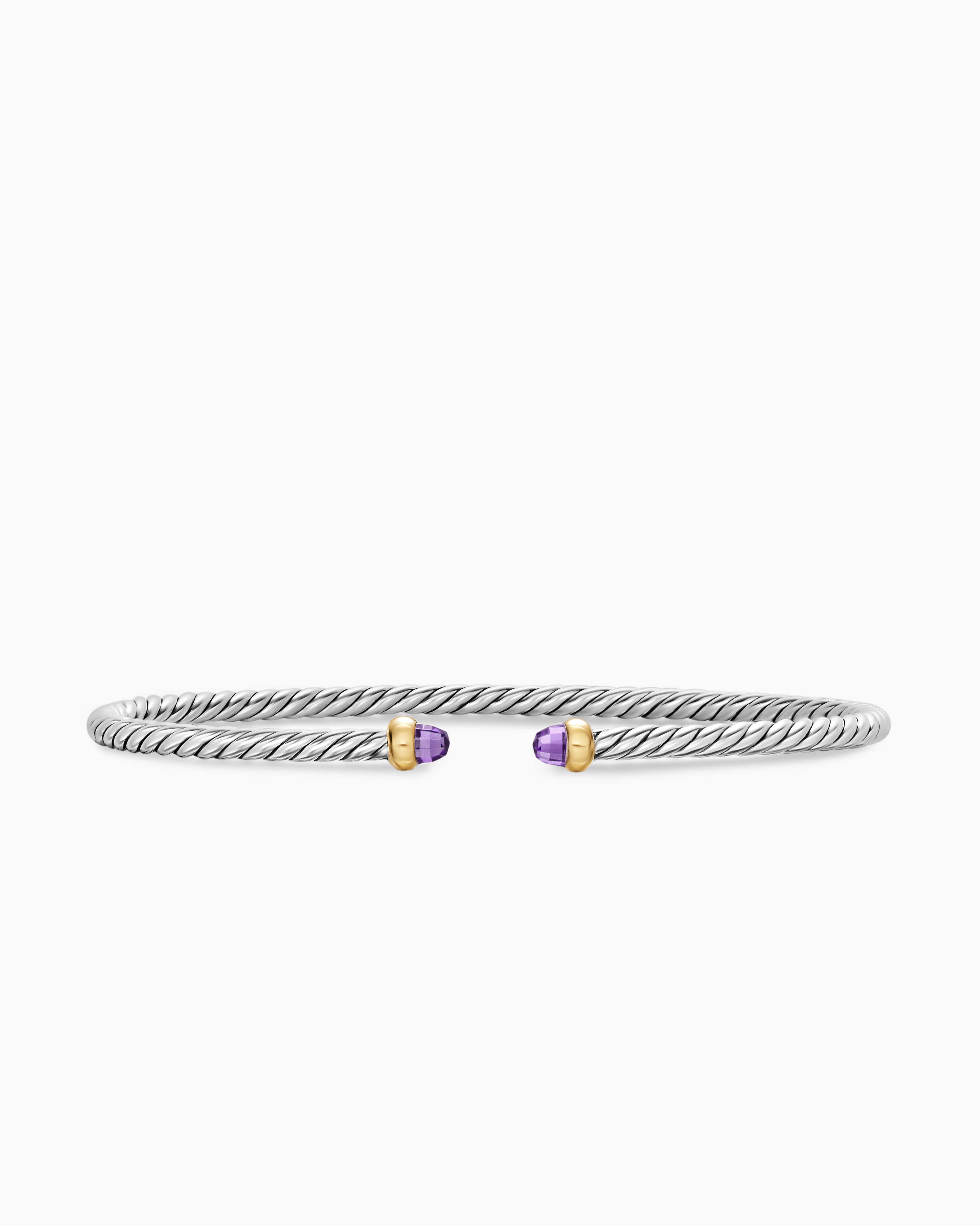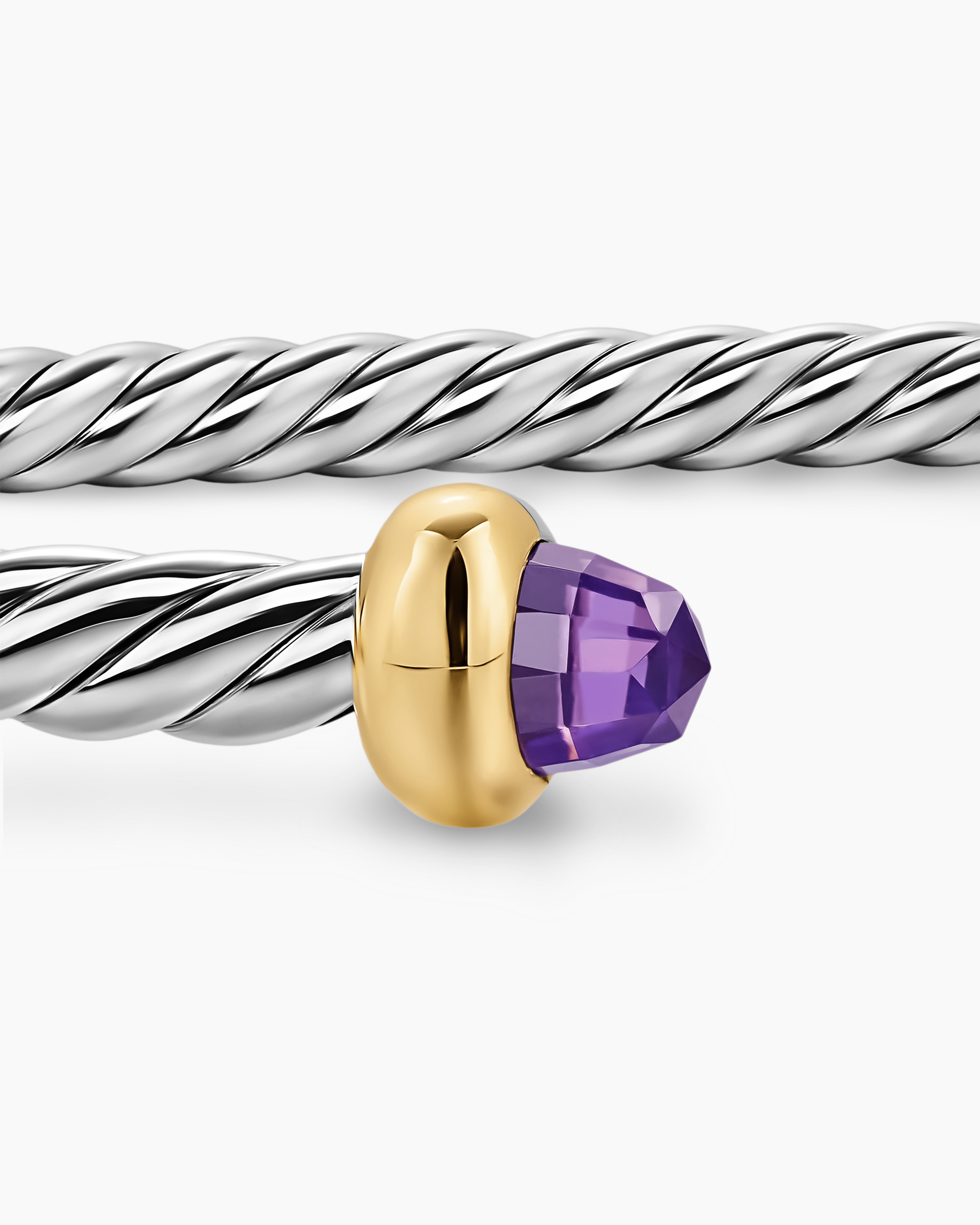 Micro Cable Flex® Bracelet Sterling Silver with 14ct Yellow Gold and Amethyst, 2.6mm