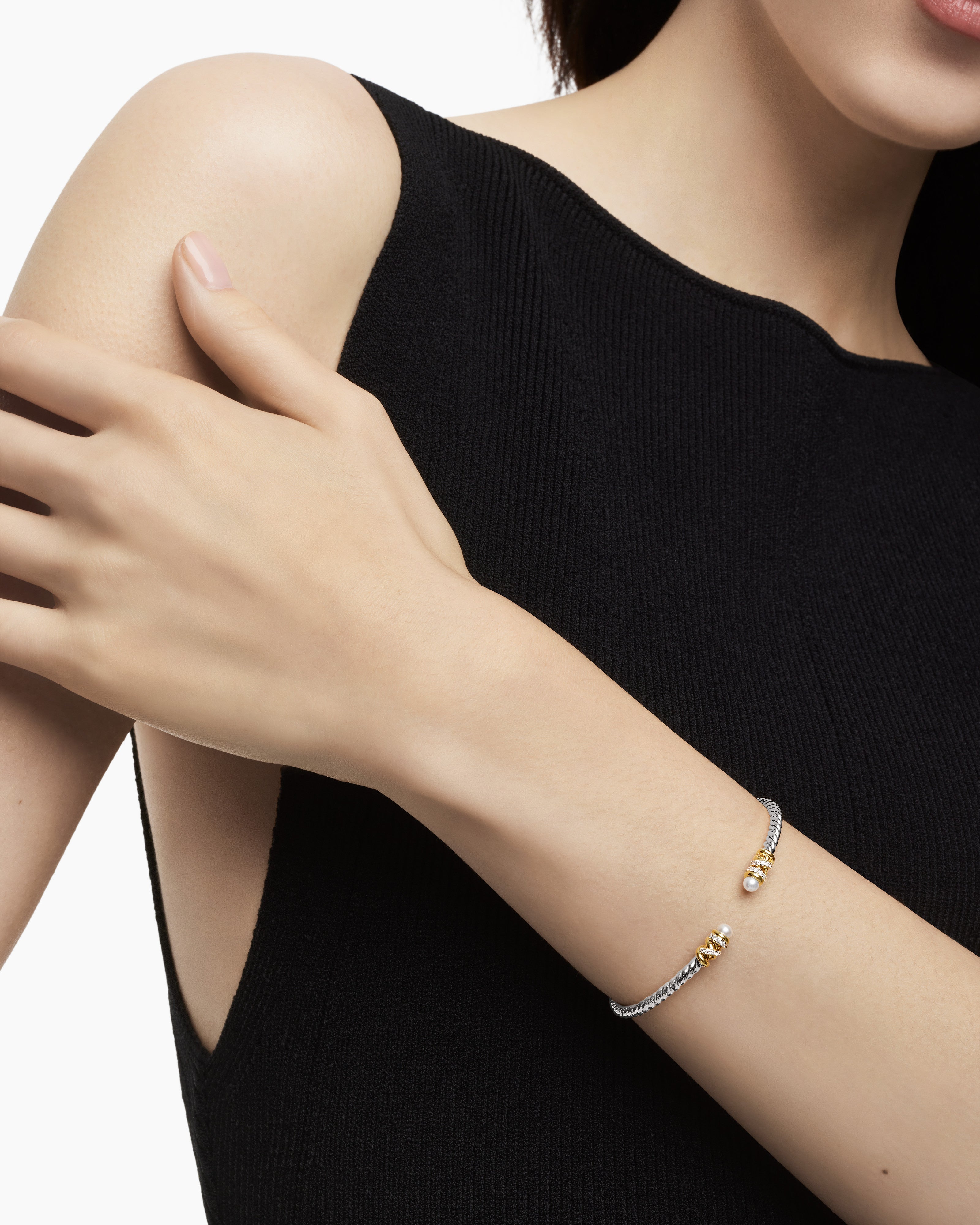 By hand, David shaped 50 feet of gold wire into the first Cable cuff, with pink tourmaline and emerald end caps. Today, the twisted Cable motif appears throughout our collections—from rings to pendants to sculptural chain links, and often in striking combinations of polished mixed metals, with brilliant gemstone detail—unifying our iconic, yet ever-evolving designs.